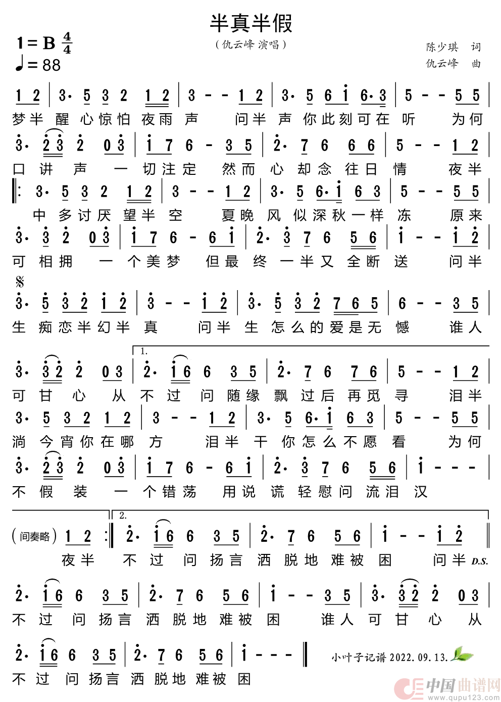 关于《半真半假》曲谱的评论