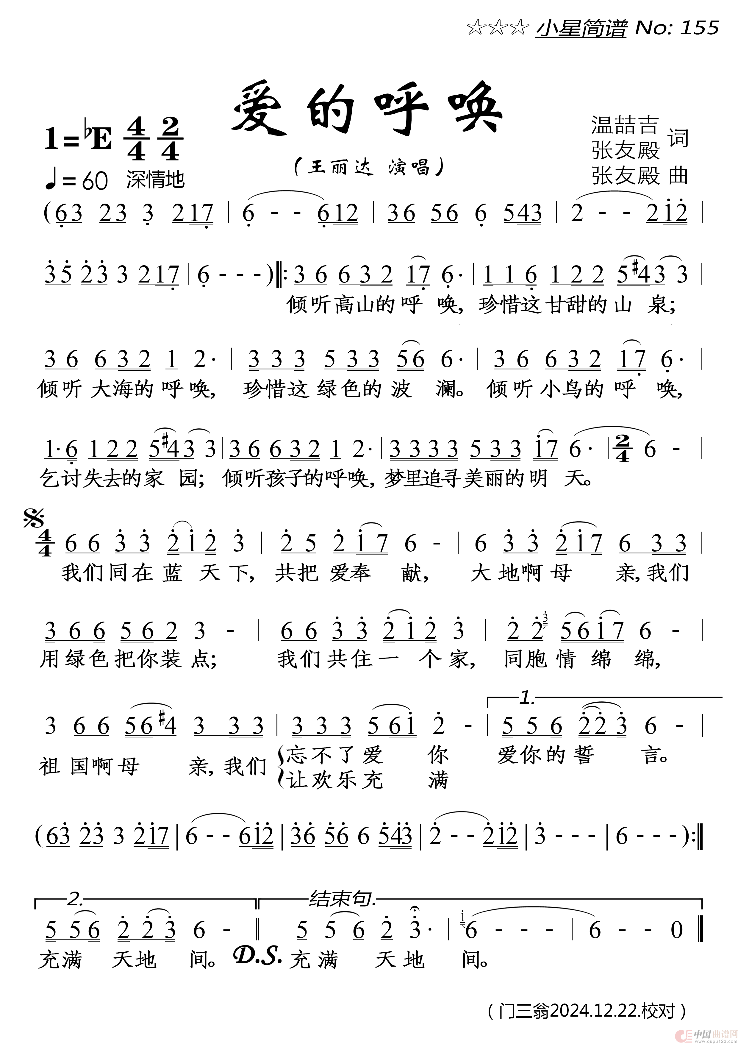 大地啊母亲的“母”应该与前面“爱奉”的谱完全一样