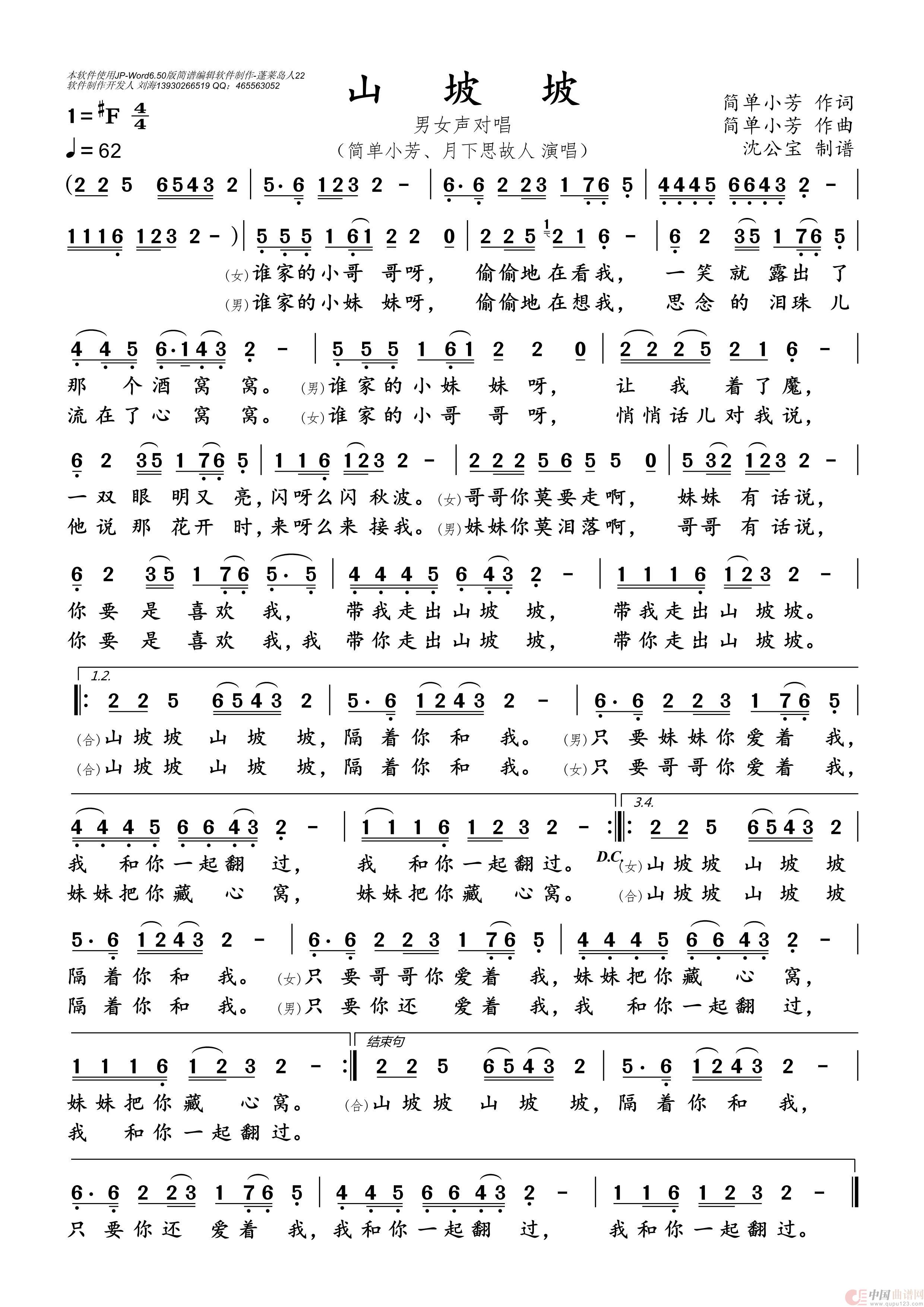 倒数第三排,男声独唱“我和你一起翻过”,词、谱也没有对上