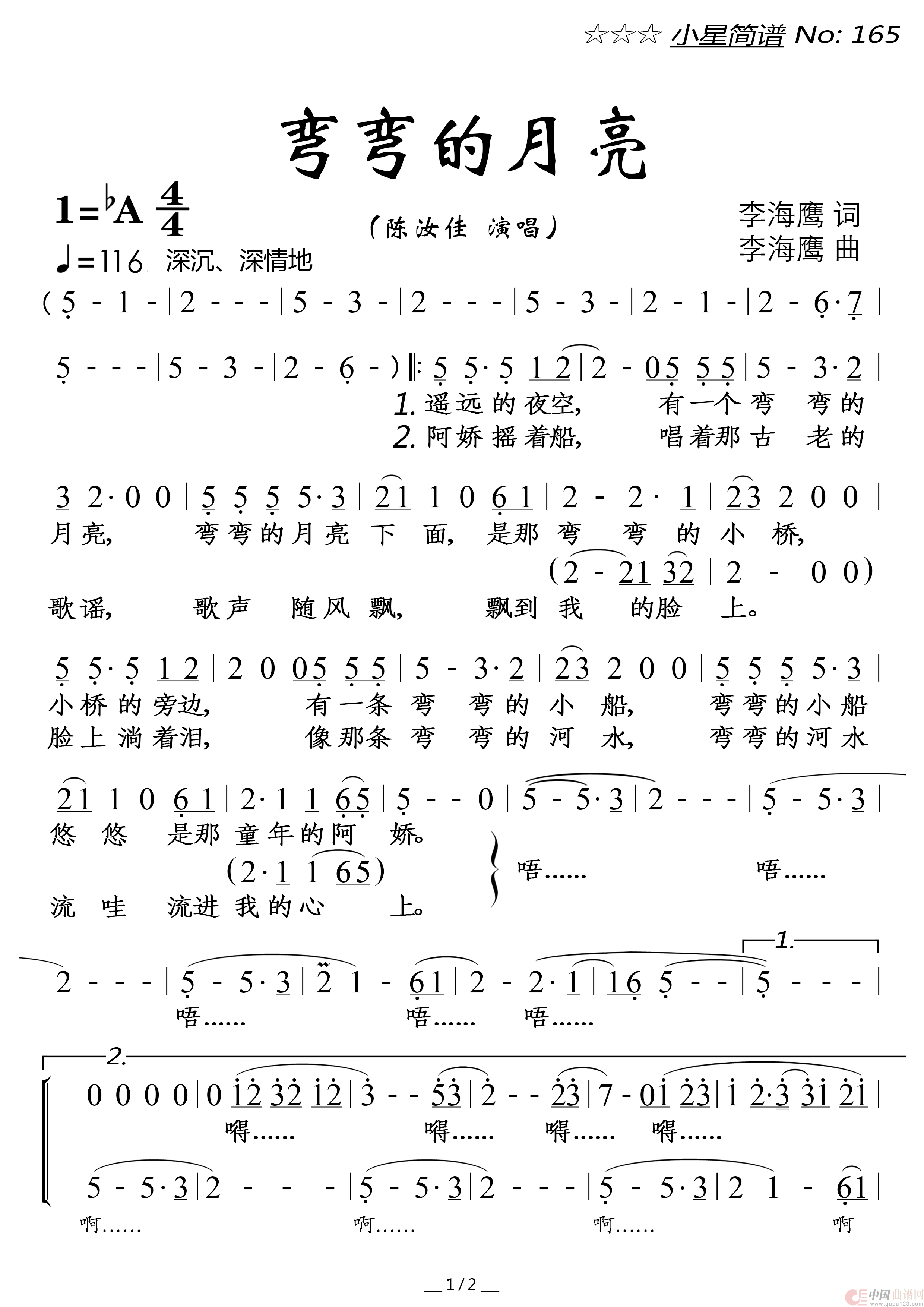 关于《弯弯的月亮》曲谱的评论