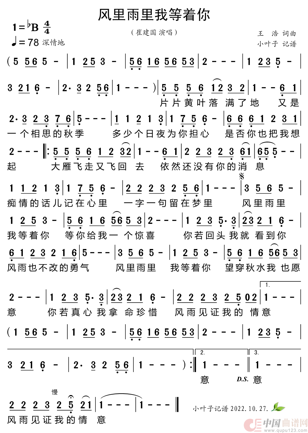 关于《风里雨里我等着你》曲谱的评论