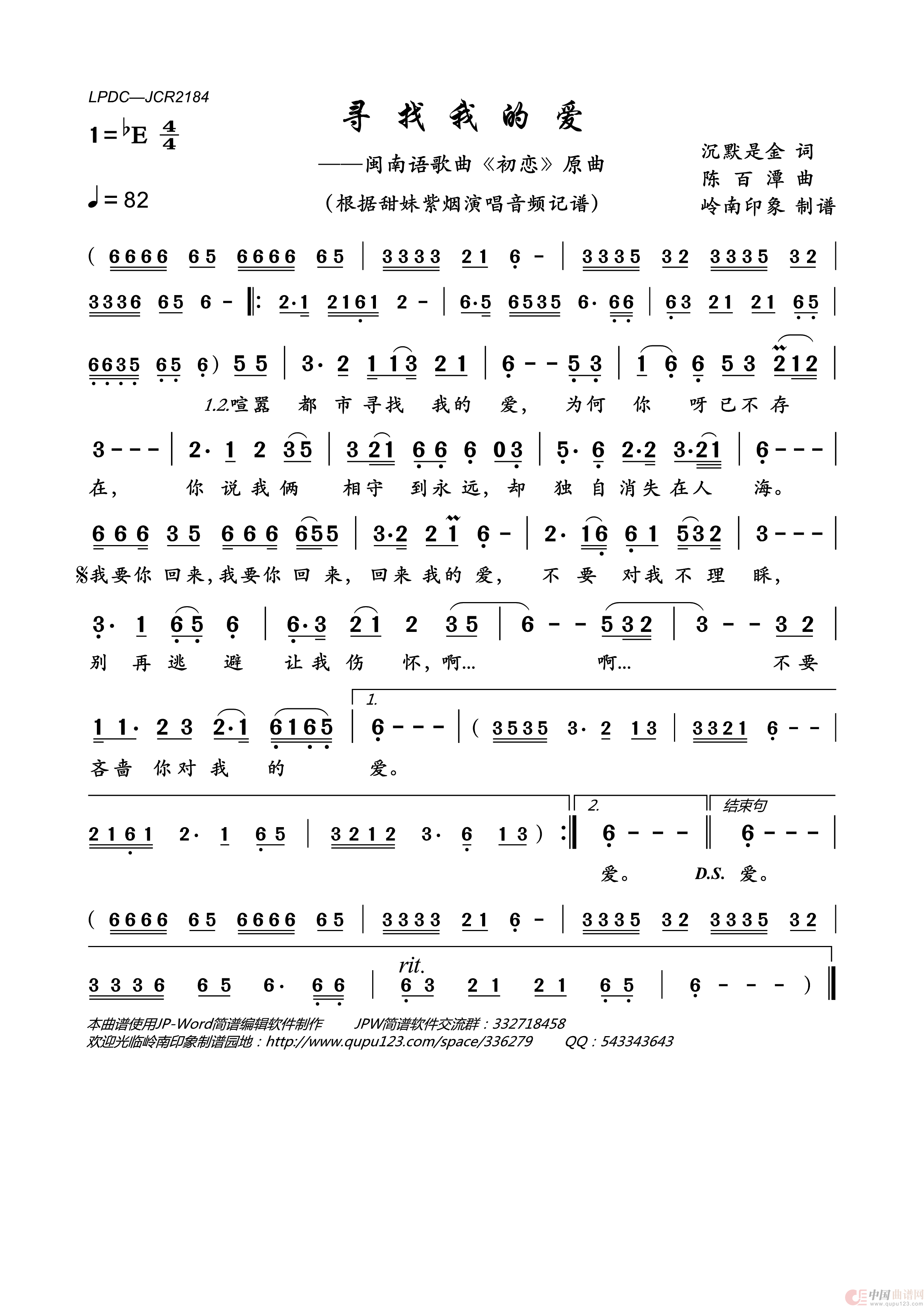 提示:在曲谱图片上单击右键,选择"图片另存为..."即可将曲谱保存到您的电脑中,打印时候可将图片插入到WORD中,调整合适大小打印即可。