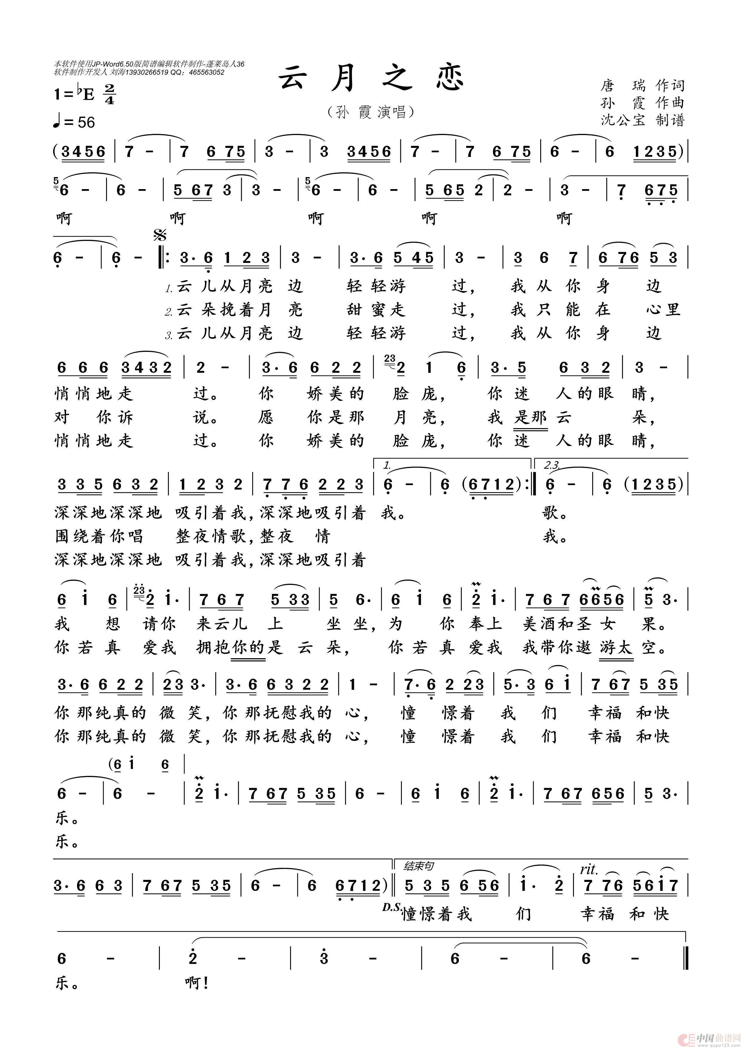 作词:唐 瑞 作曲:孙 霞 演唱(奏):孙 霞 来源:沈公宝 制谱 上传:普通一兵