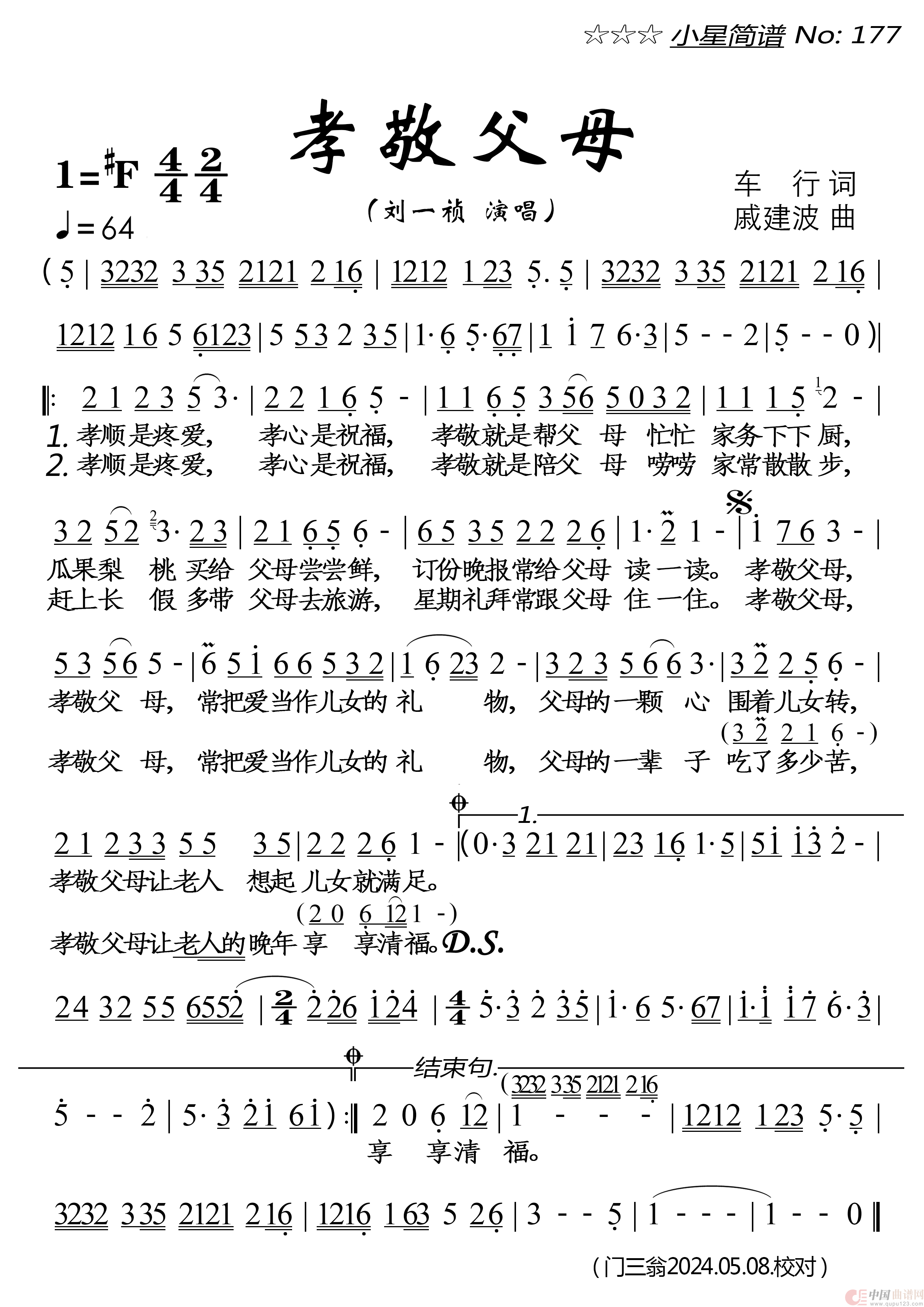 关于《孝敬父母》曲谱的评论