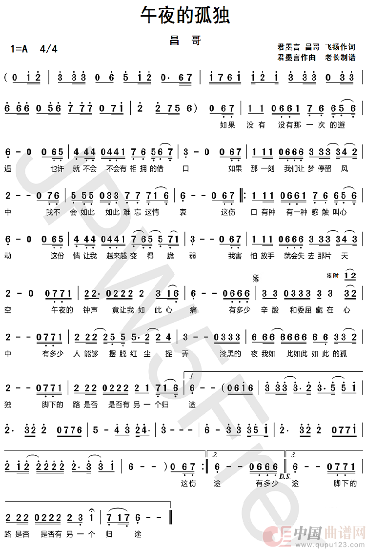 作词:君墨言/昌哥/飞扬 作曲:君墨言 演唱(奏):昌哥 来源:谱友指尖上的老长上传 上传:指尖上的老长