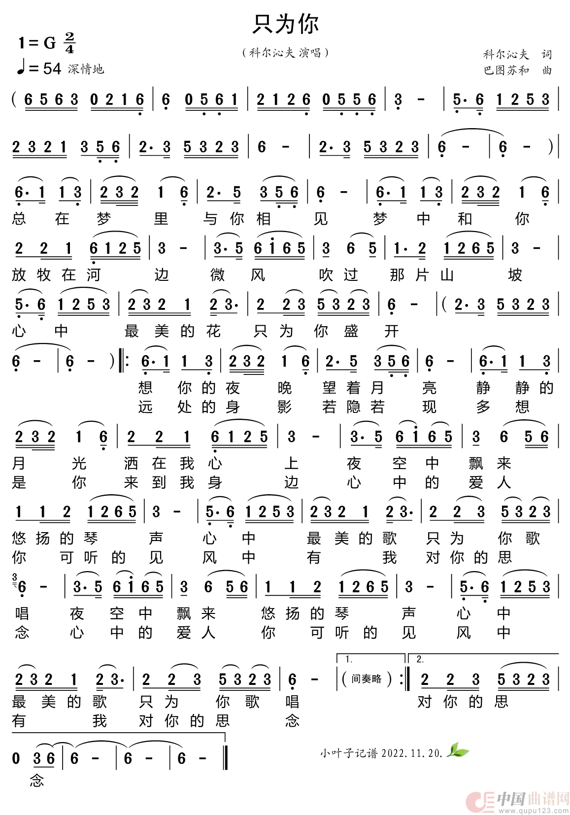 关于《只为你》曲谱的评论