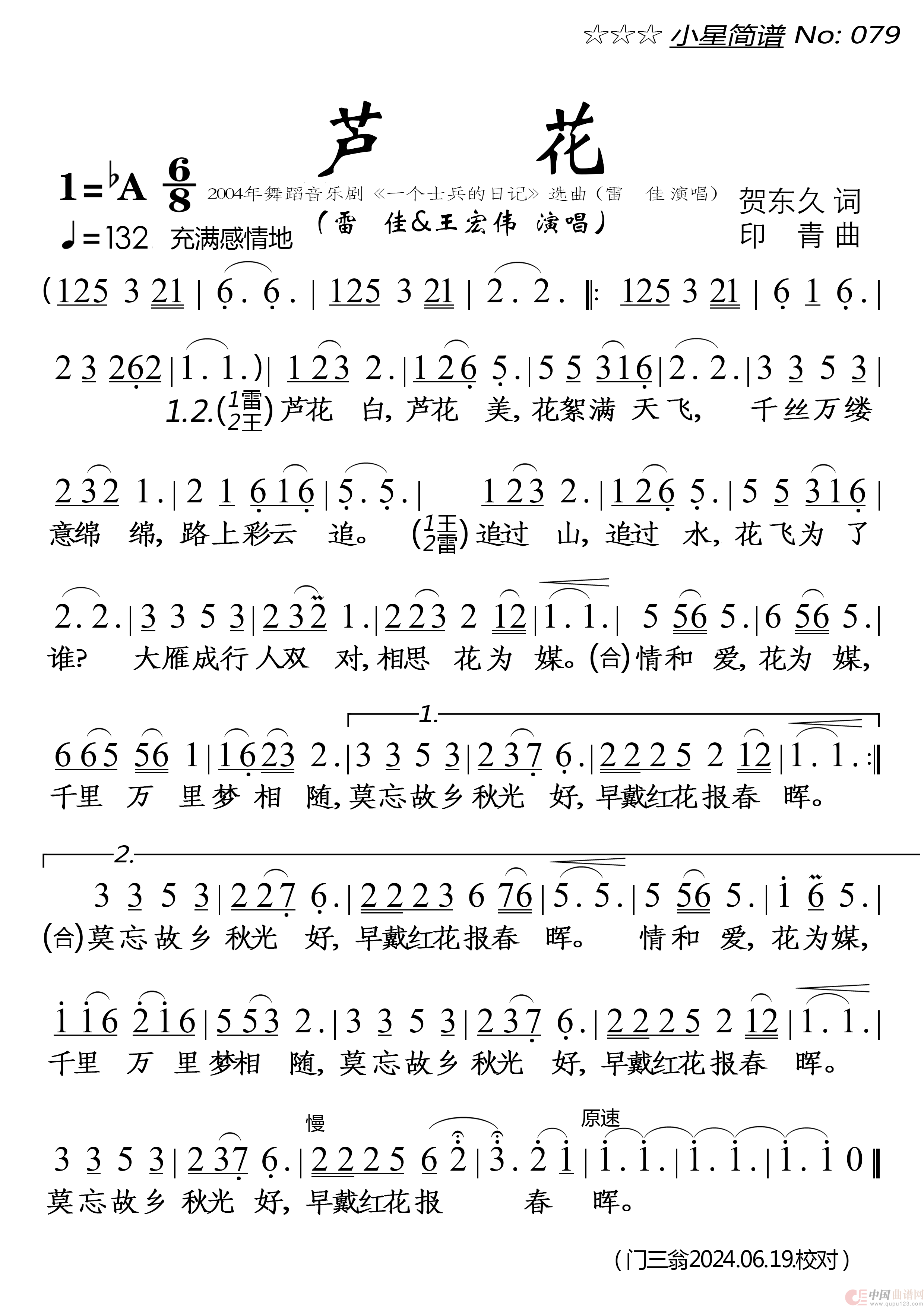 关于《芦花》曲谱的评论