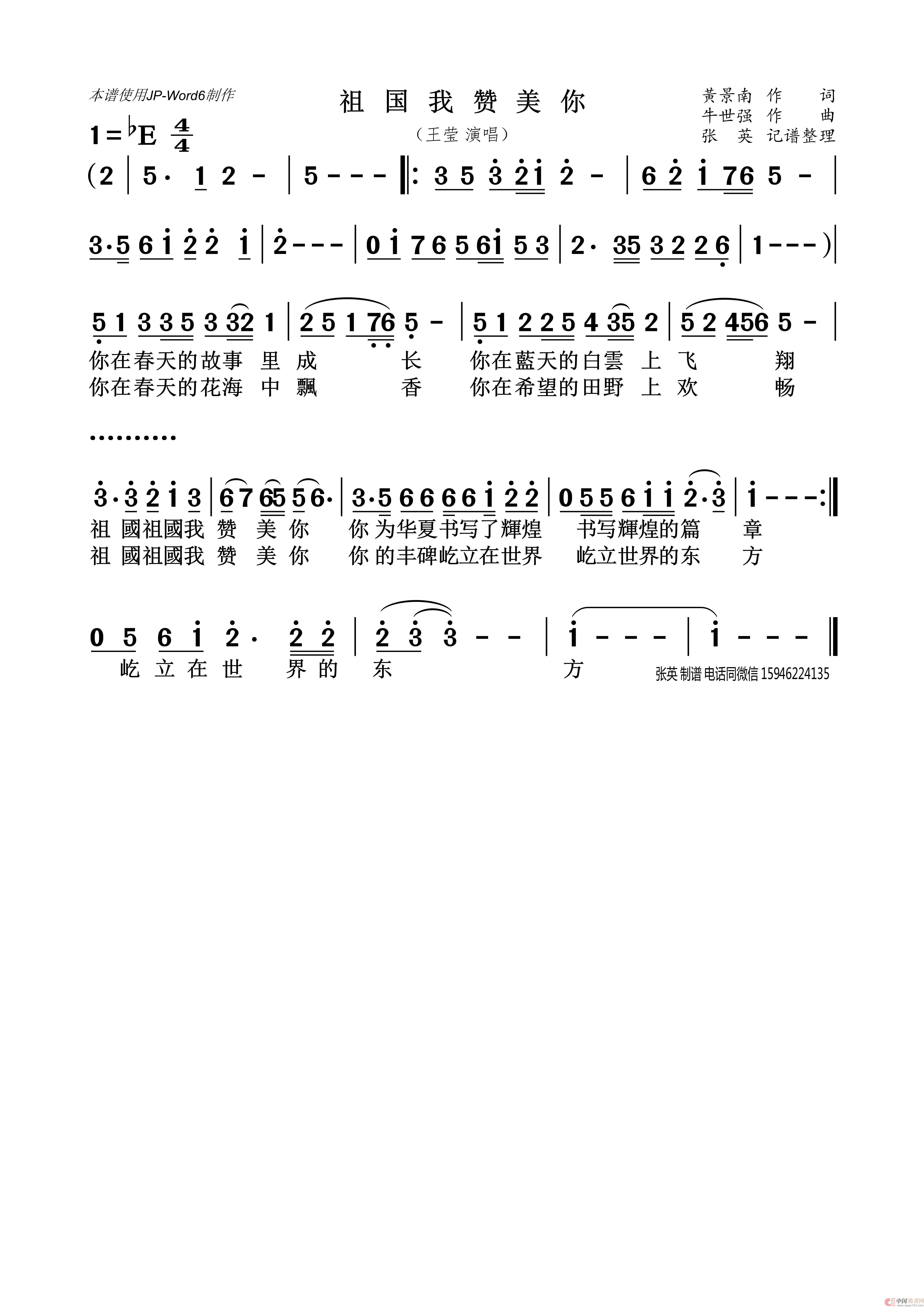 《祖国我赞美你》文本歌词