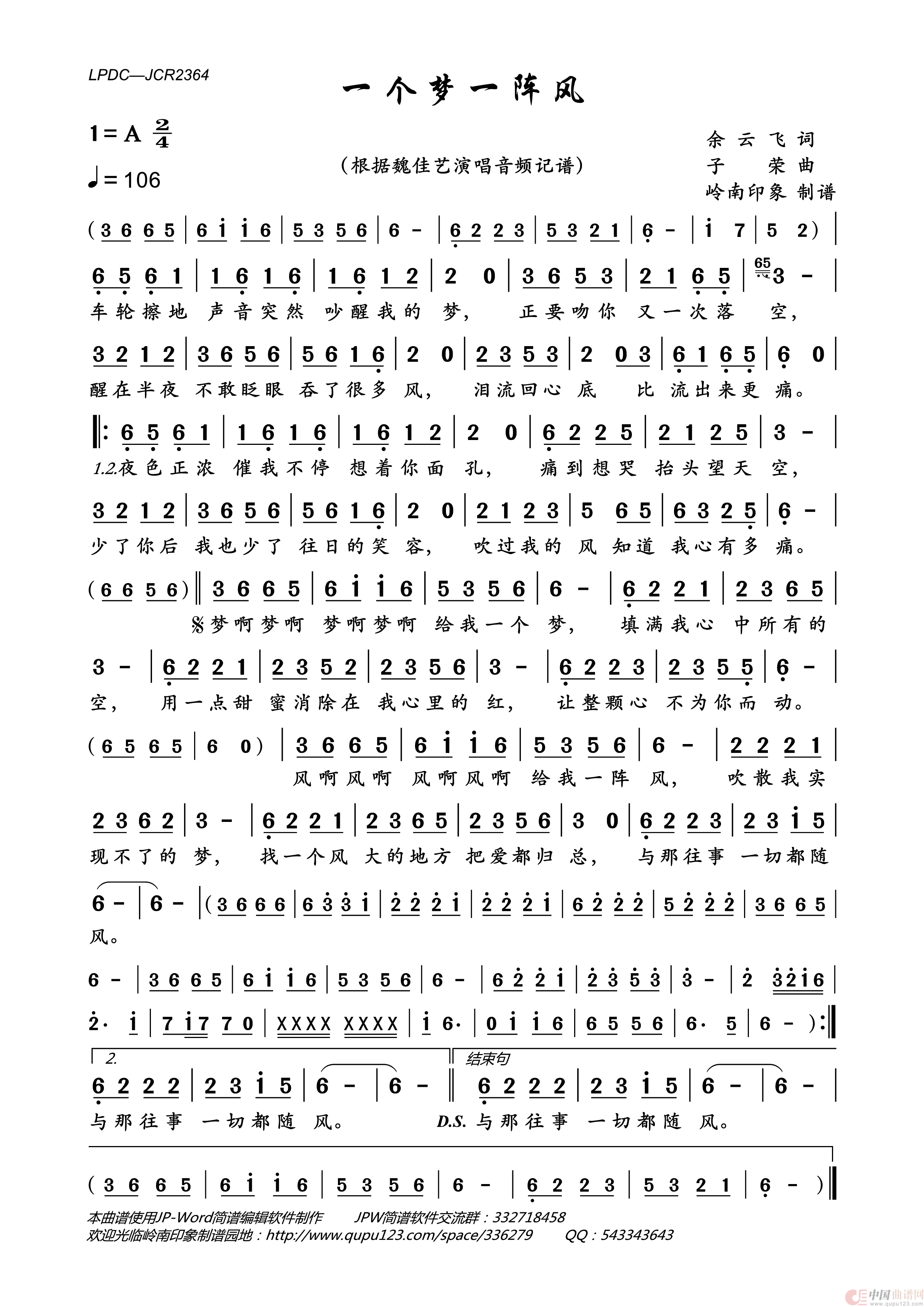 《一个梦一阵风》文本歌词