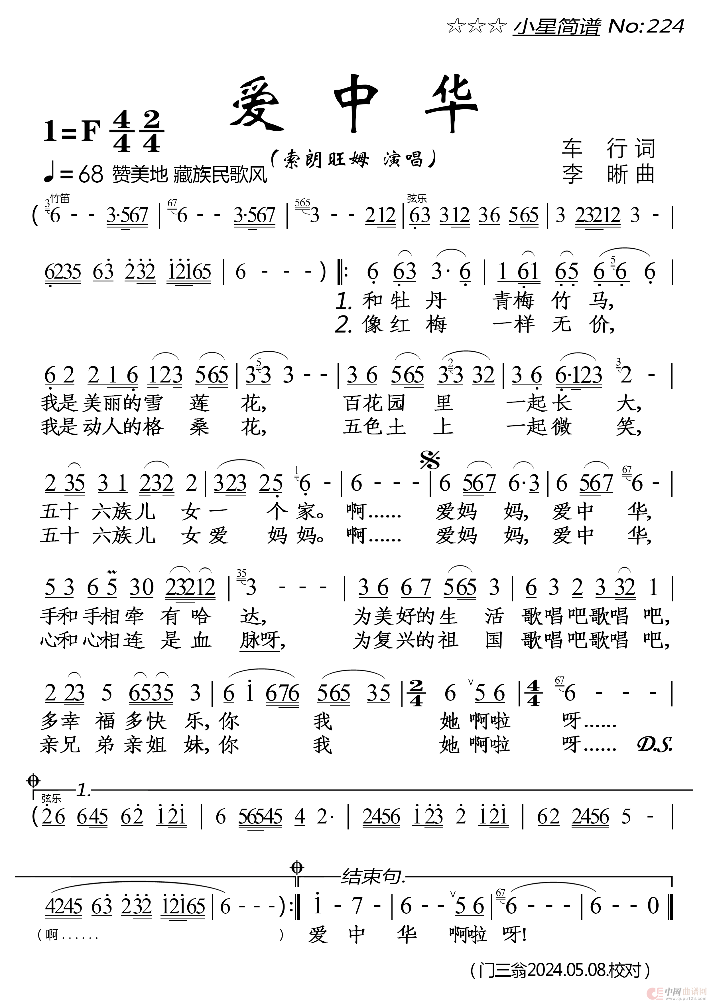 关于《爱中华》曲谱的评论