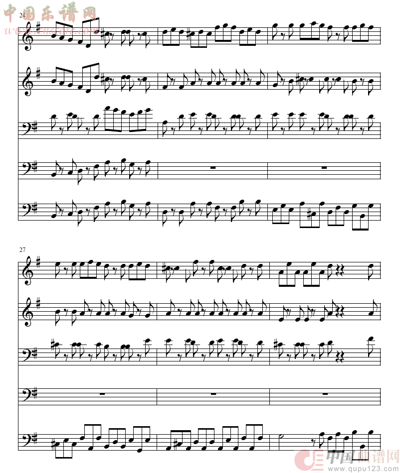 提示:在曲谱图片上单击右键,选择"图片另存为..."即可将曲谱保存到您的电脑中,打印时候可将图片插入到WORD中,调整合适大小打印即可。