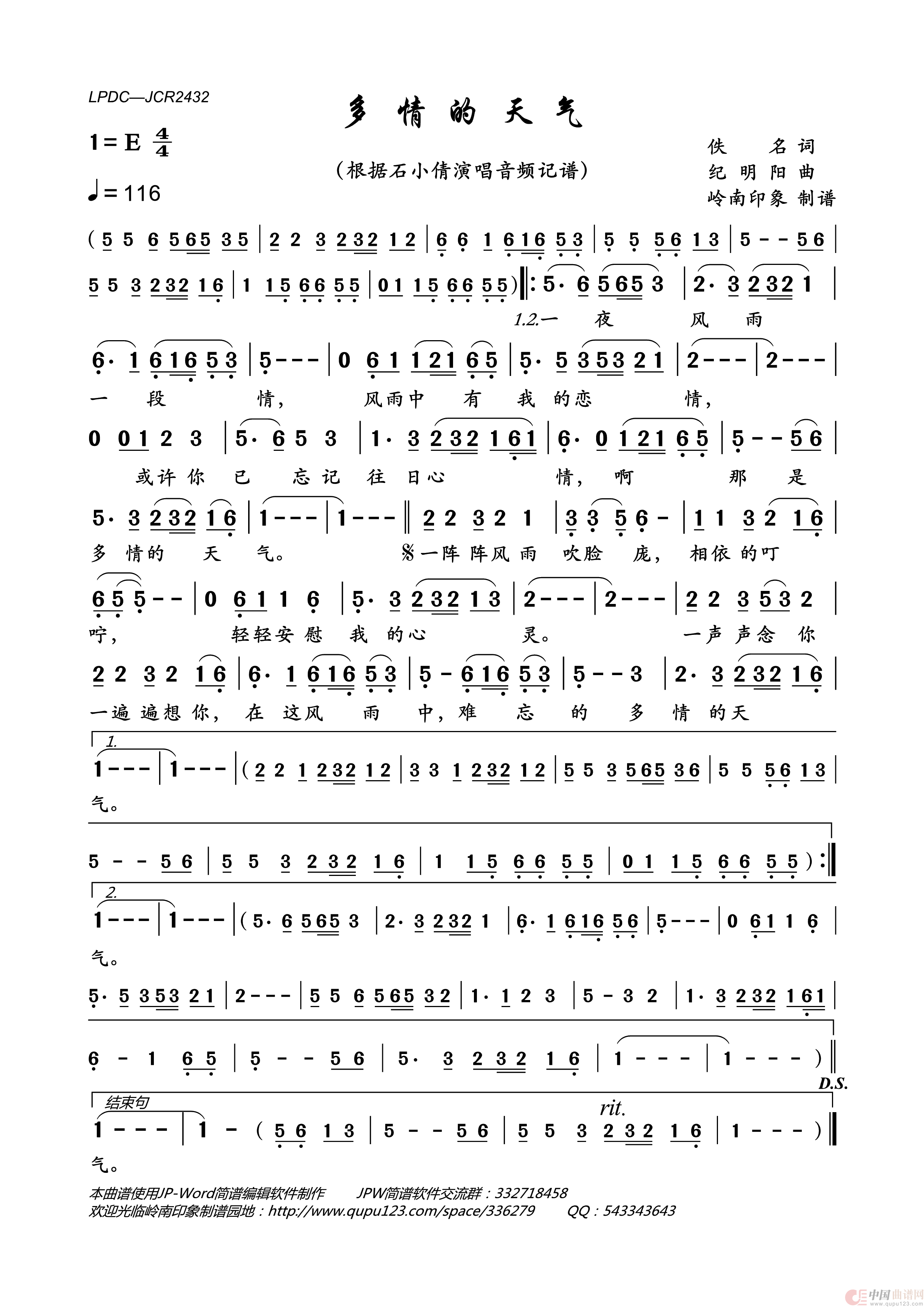 《多情的天气》文本歌词