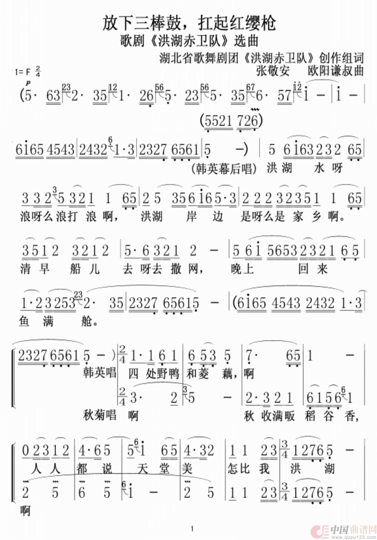 关于《放下三棒鼓,扛起红缨枪》曲谱的评论