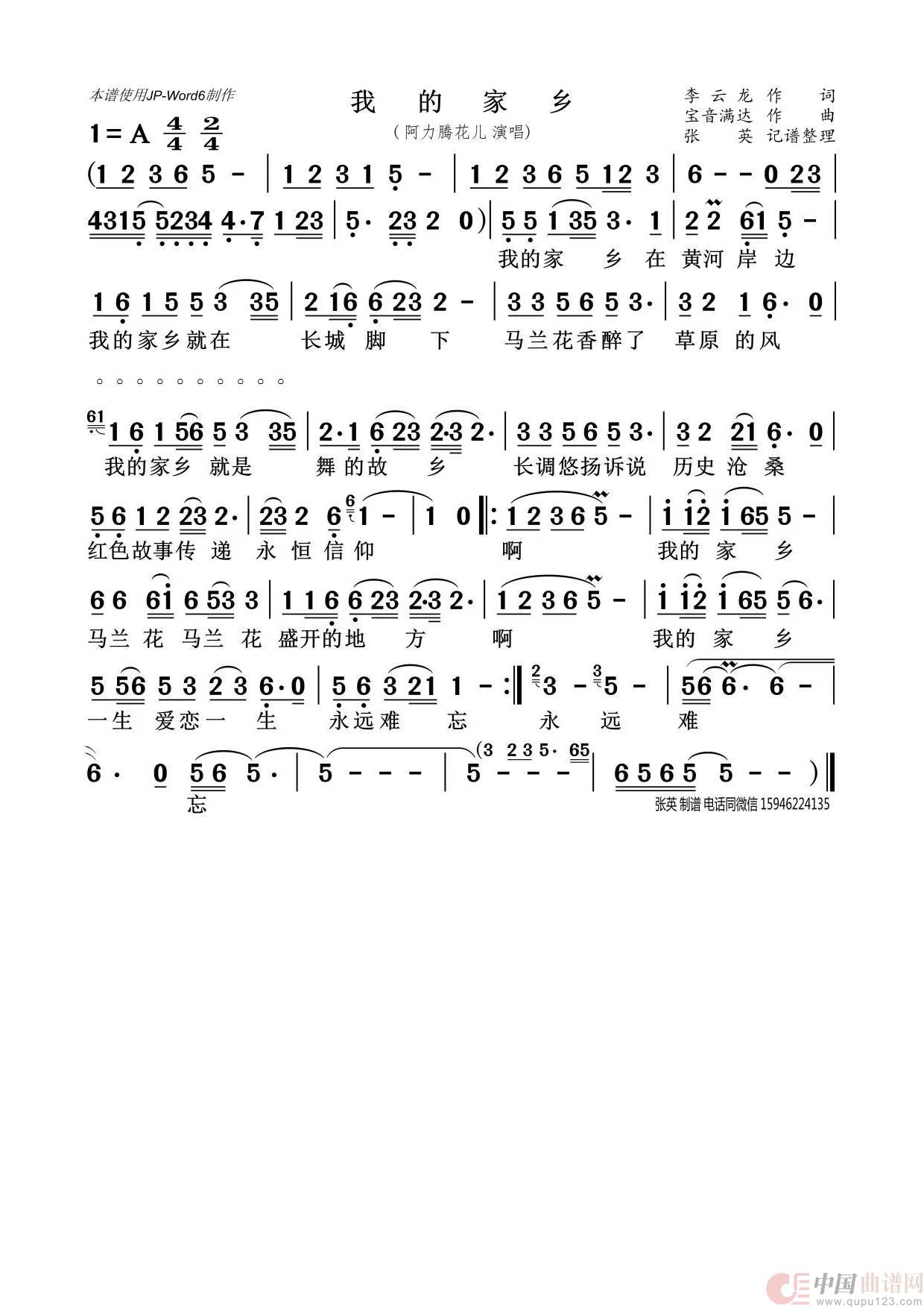 作词:李云龙 作曲:宝音满达 演唱(奏): 阿力腾花儿 来源:张英记谱整理 上传:张英681004