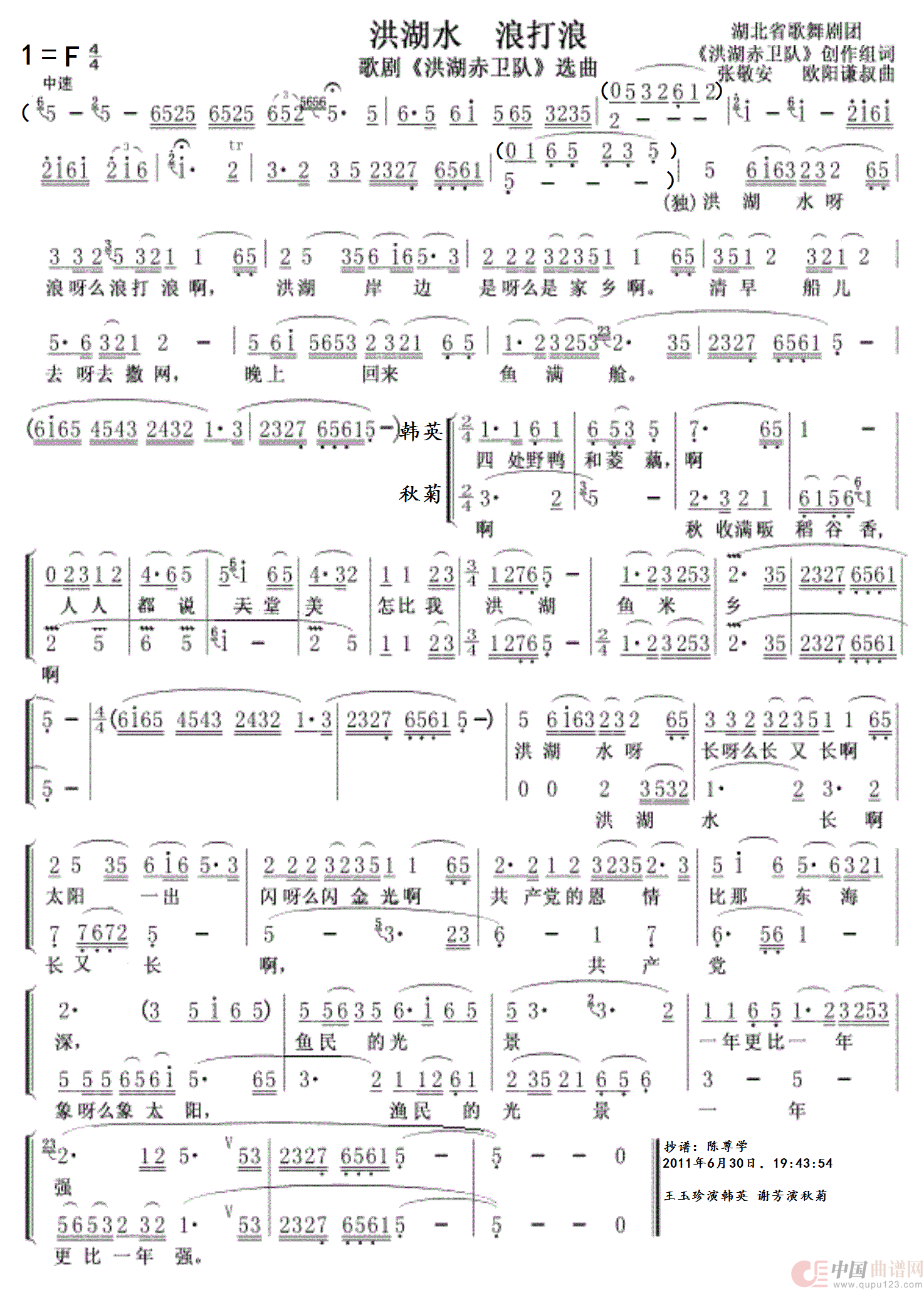 关于《洪湖水浪打浪》曲谱的评论