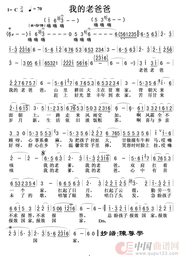 提示:在曲谱图片上单击右键,选择"图片另存为..."即可将曲谱保存到您的电脑中,打印时候可将图片插入到WORD中,调整合适大小打印即可。