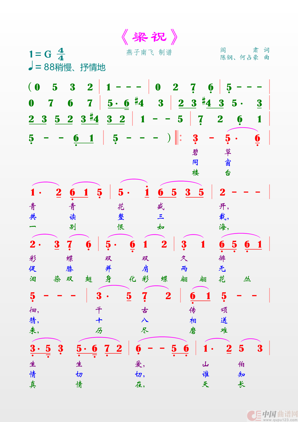 关于《梁祝》曲谱的评论
