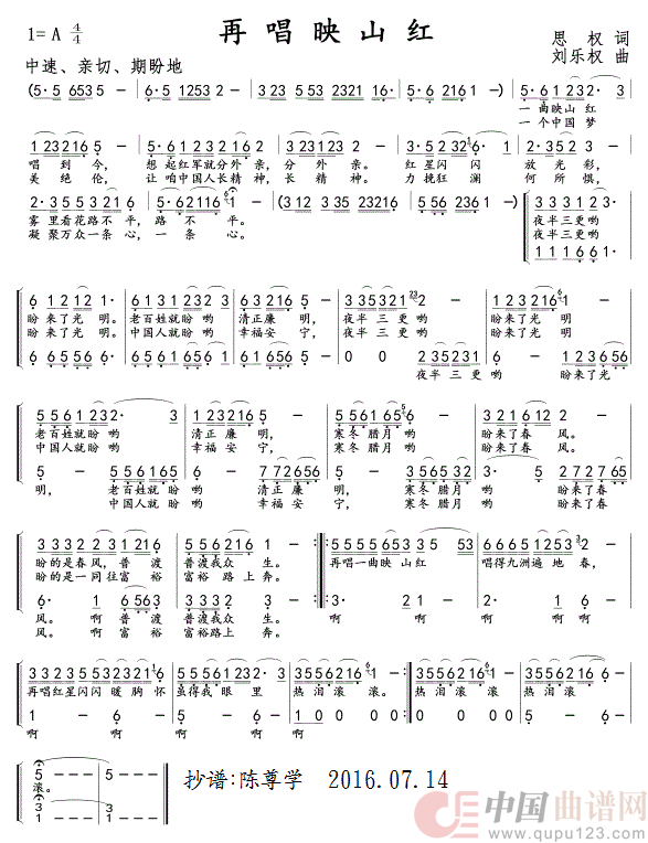 关于《再唱映山红》曲谱的评论