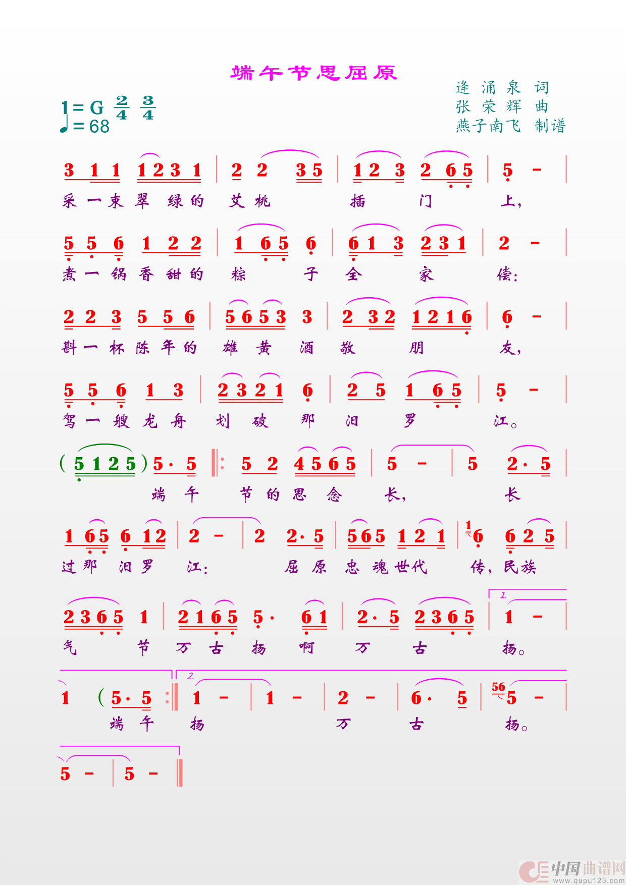 屈原忠魂世代传,民族气节万古扬啊万古扬。