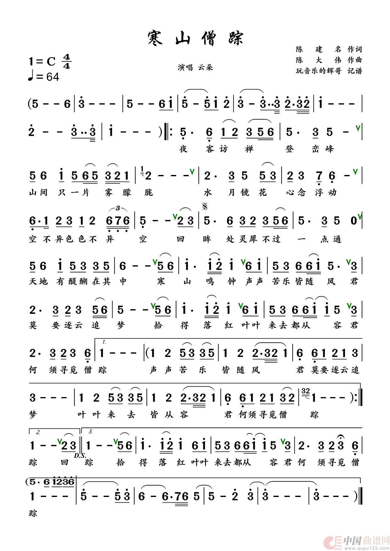 提示:在曲谱图片上单击右键,选择"图片另存为..."即可将曲谱保存到您的电脑中,打印时候可将图片插入到WORD中,调整合适大小打印即可。