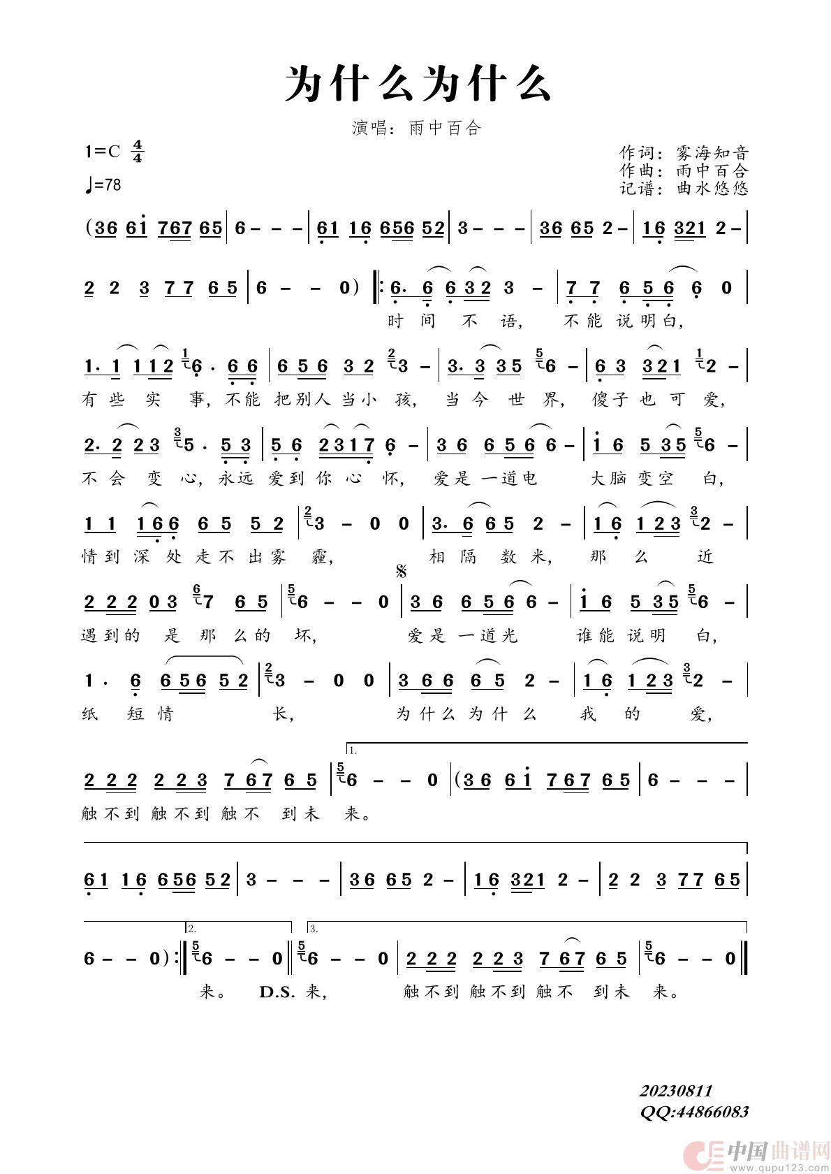 关于《为什么为什么》曲谱的评论