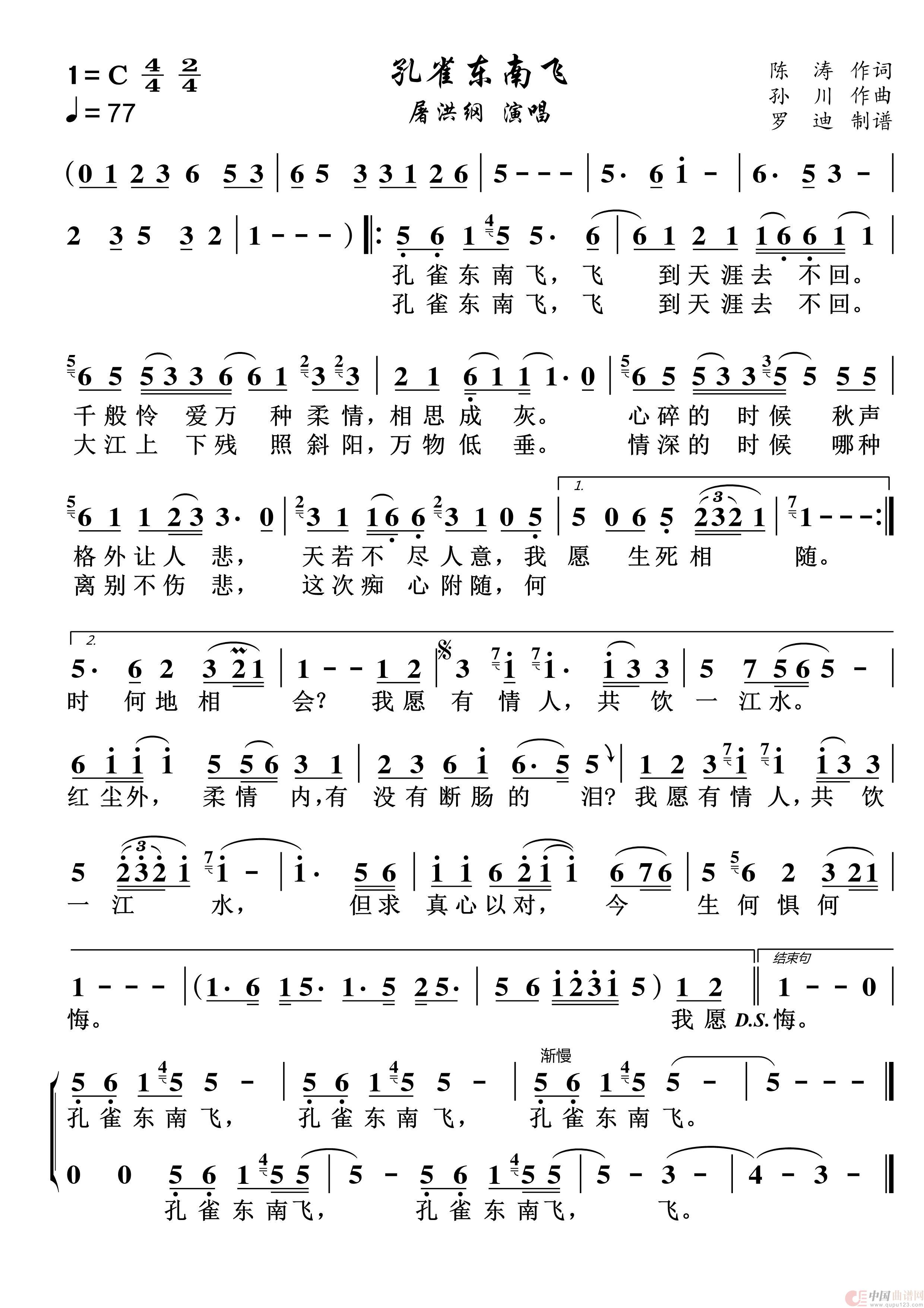 作词:陈涛   作曲:孙川   演唱(奏):屠洪纲   来源:根据屠洪纲演唱记谱   上传:罗迪   日期:2023-08-15   浏览次数: