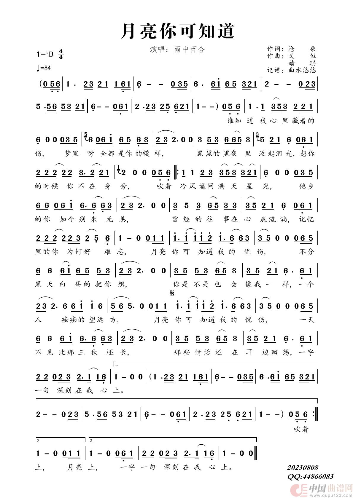 关于《月亮你可知道》曲谱的评论