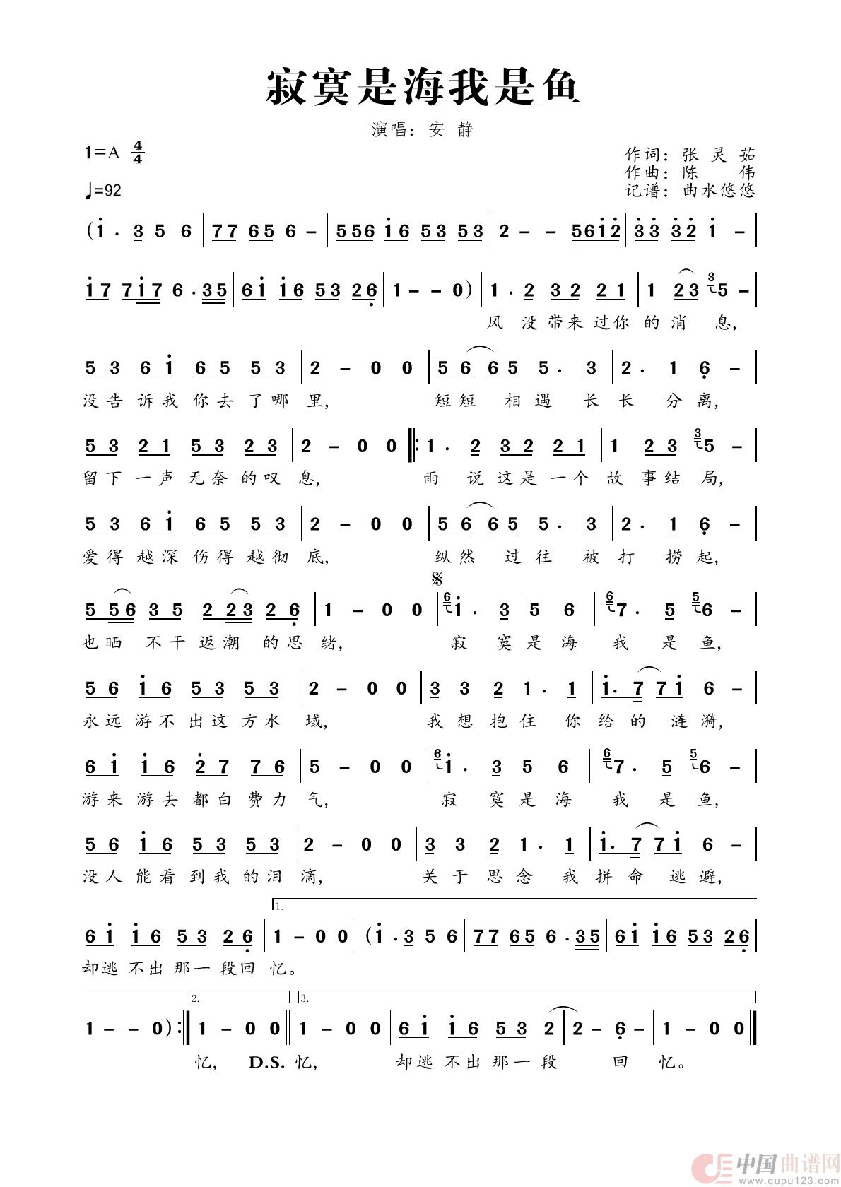 关于《寂寞是海我是鱼》曲谱的评论
