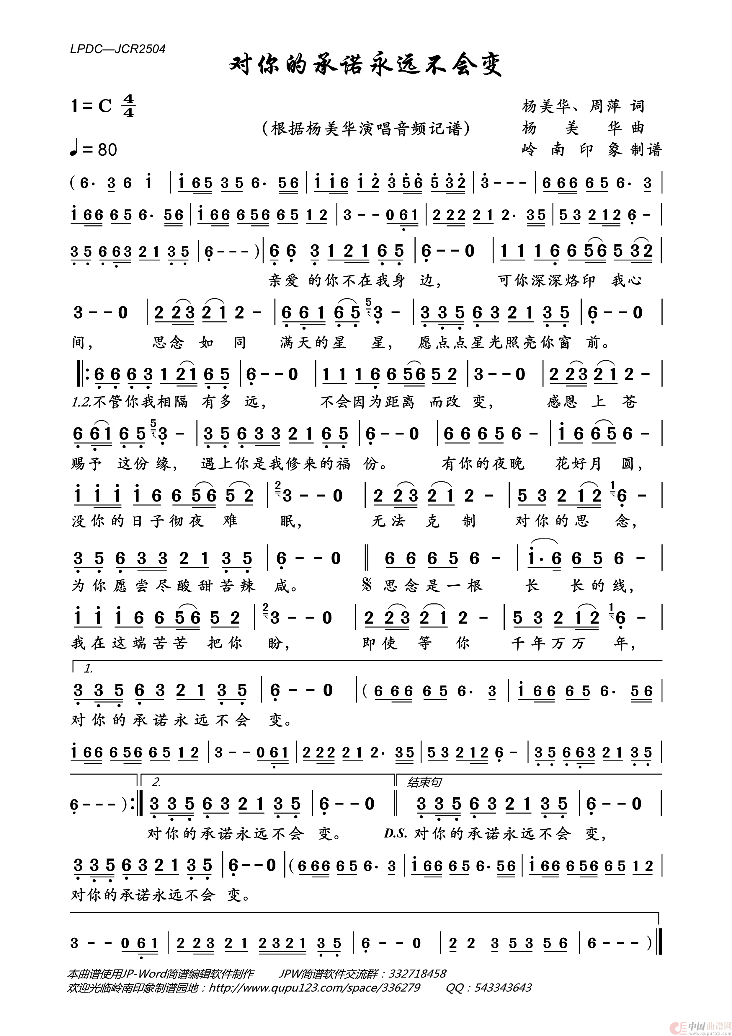 《对你的承诺永远不会变》文本歌词