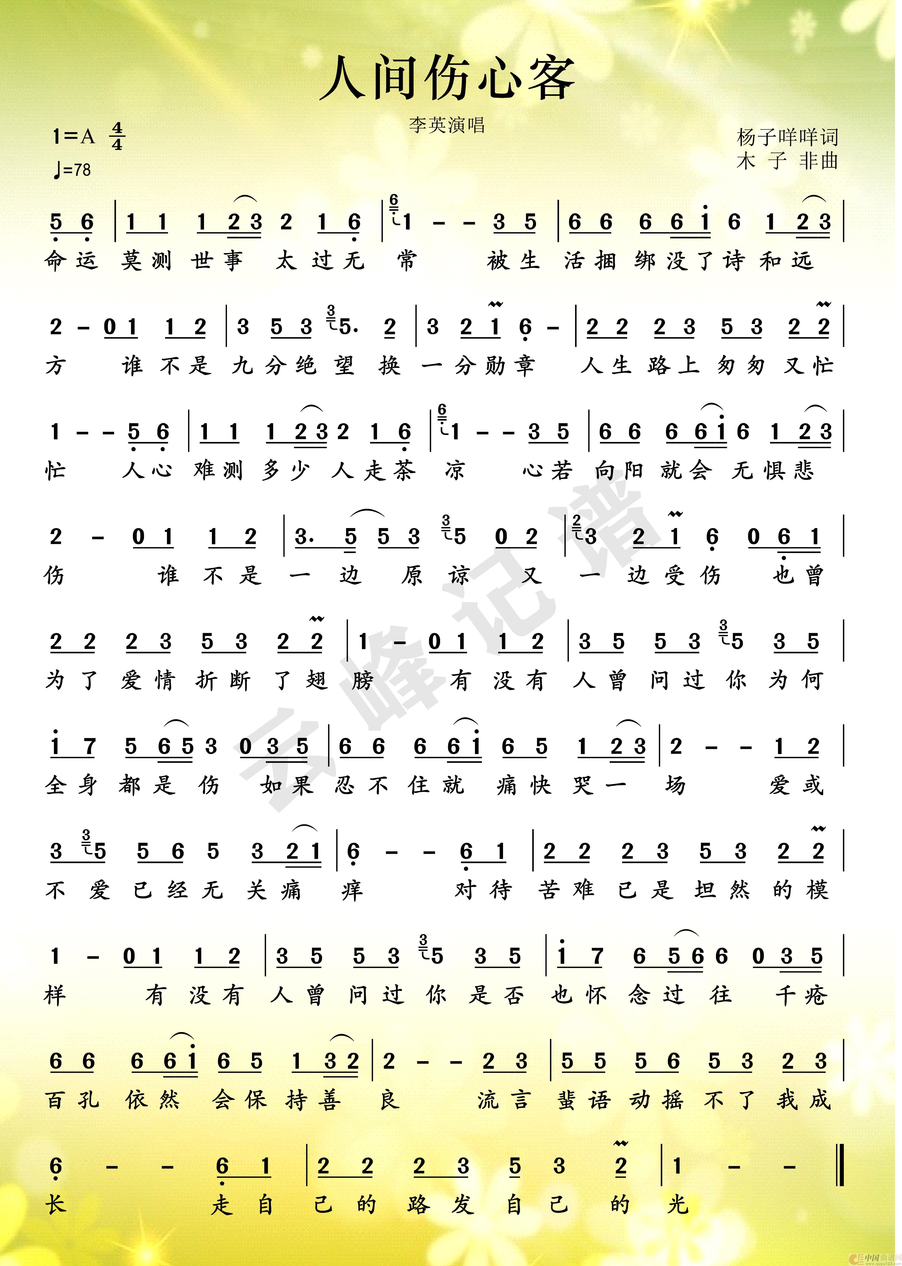 作词:杨子咩咩   作曲:木子非   演唱(奏):李英   来源:谱友小鸟一人上传   上传:小鸟一人   日期:2023-11-16   浏览次数: