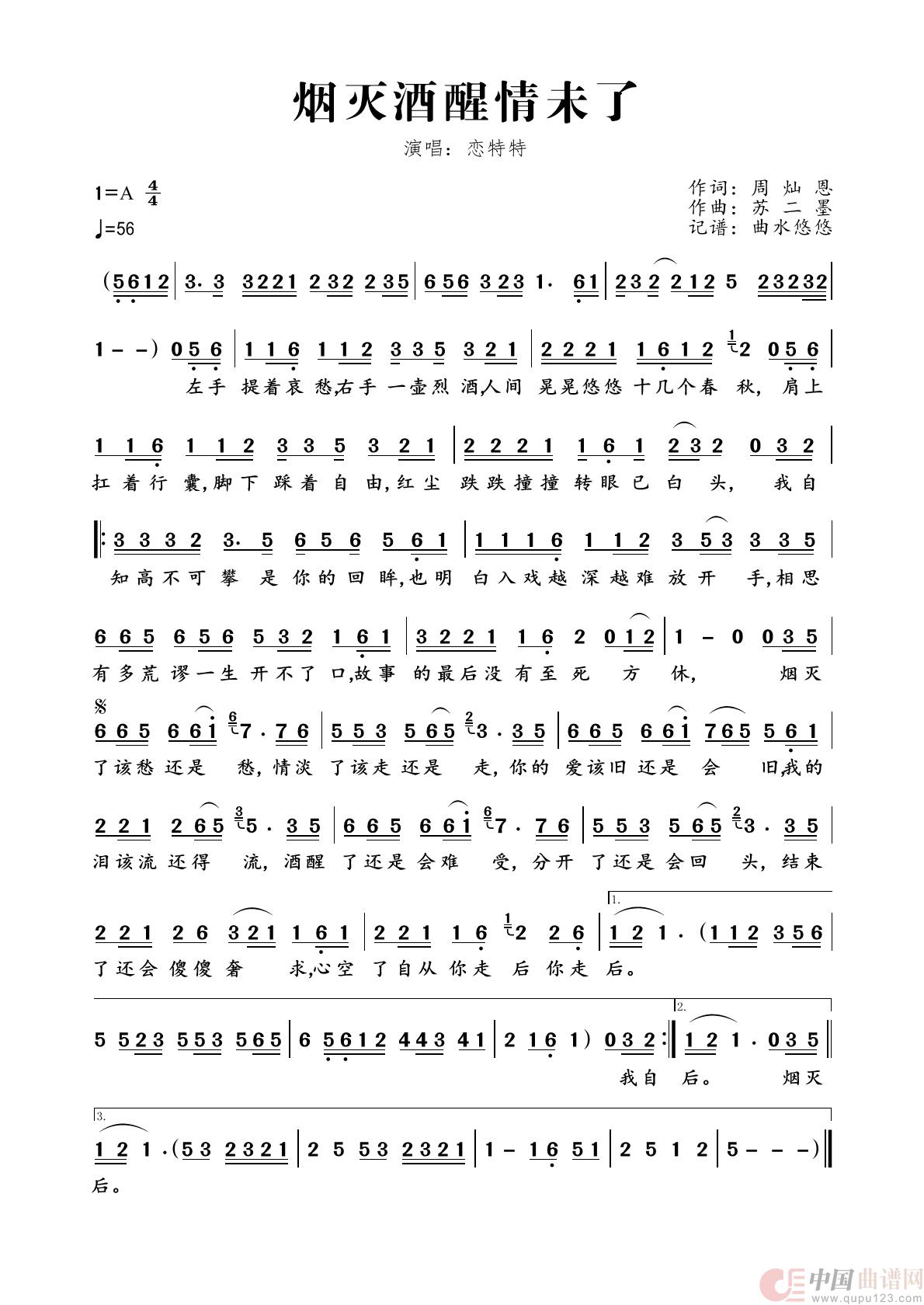 关于《烟灭酒醒情未了》曲谱的评论