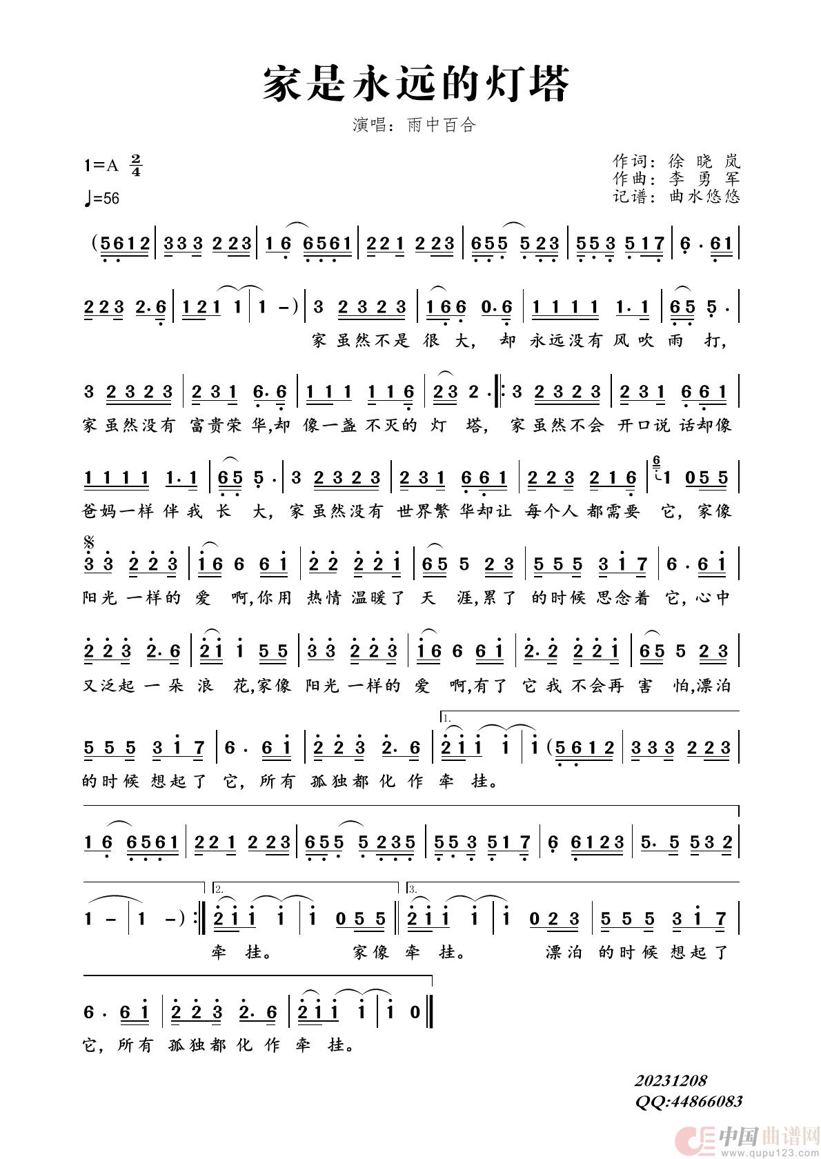 关于《家是永远的灯塔》曲谱的评论