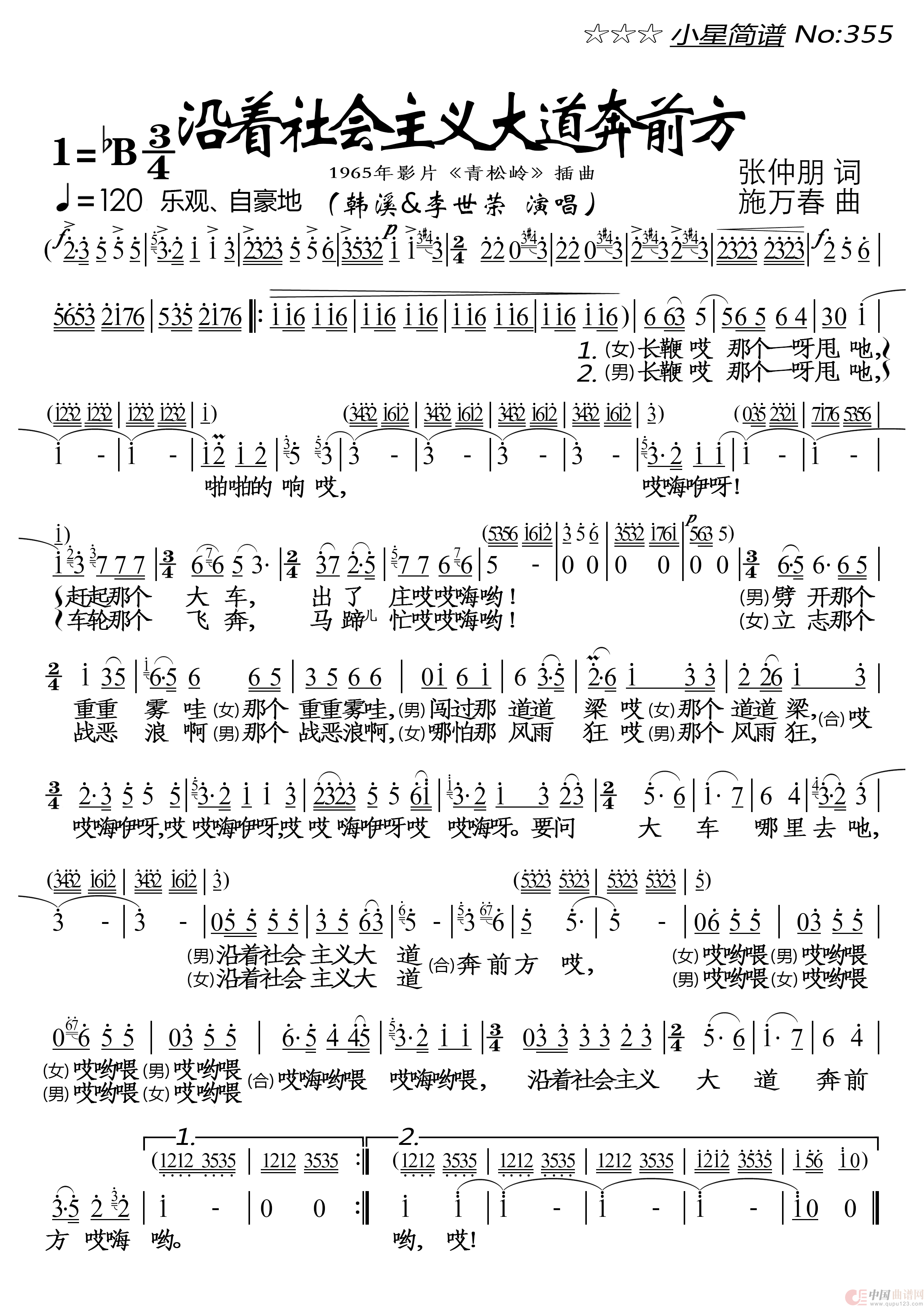 关于《沿着社会主义大道奔前方》曲谱的评论