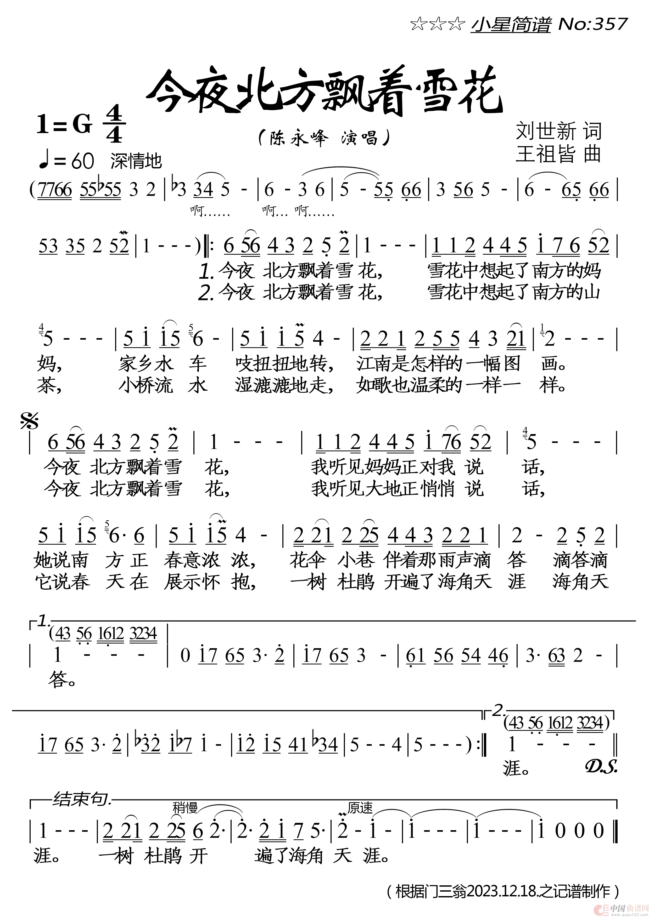 关于《今夜北方飘着雪花》曲谱的评论