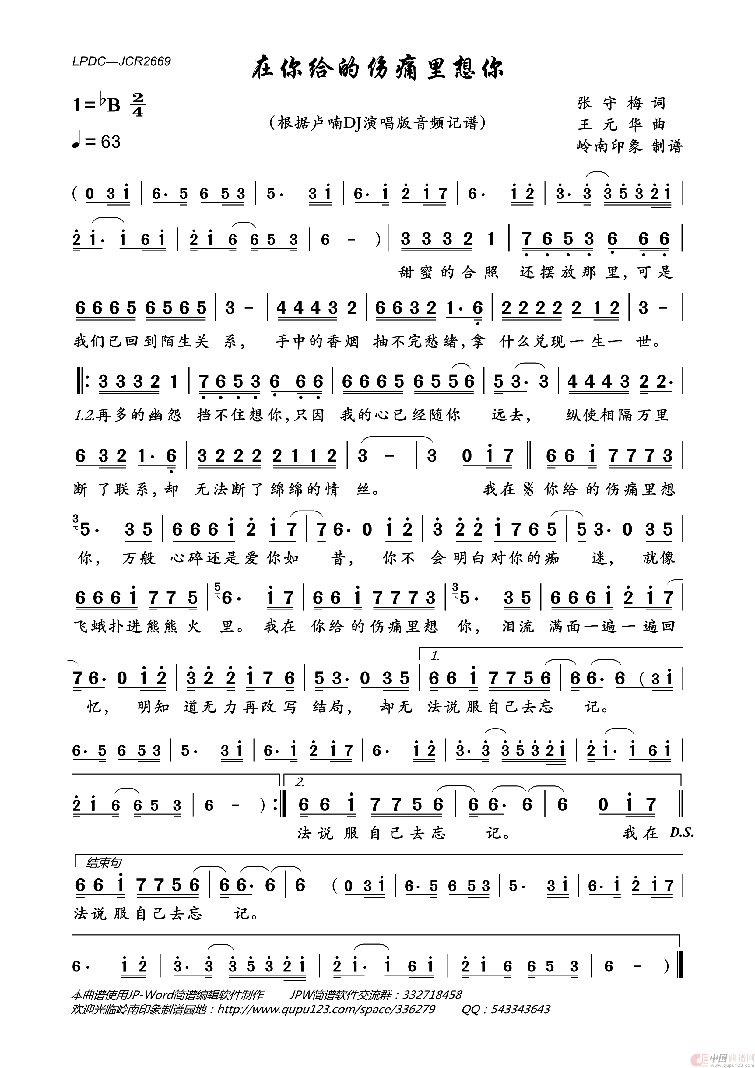 提示:在曲谱图片上单击右键,选择"图片另存为..."即可将曲谱保存到您的电脑中,打印时候可将图片插入到WORD中,调整合适大小打印即可。