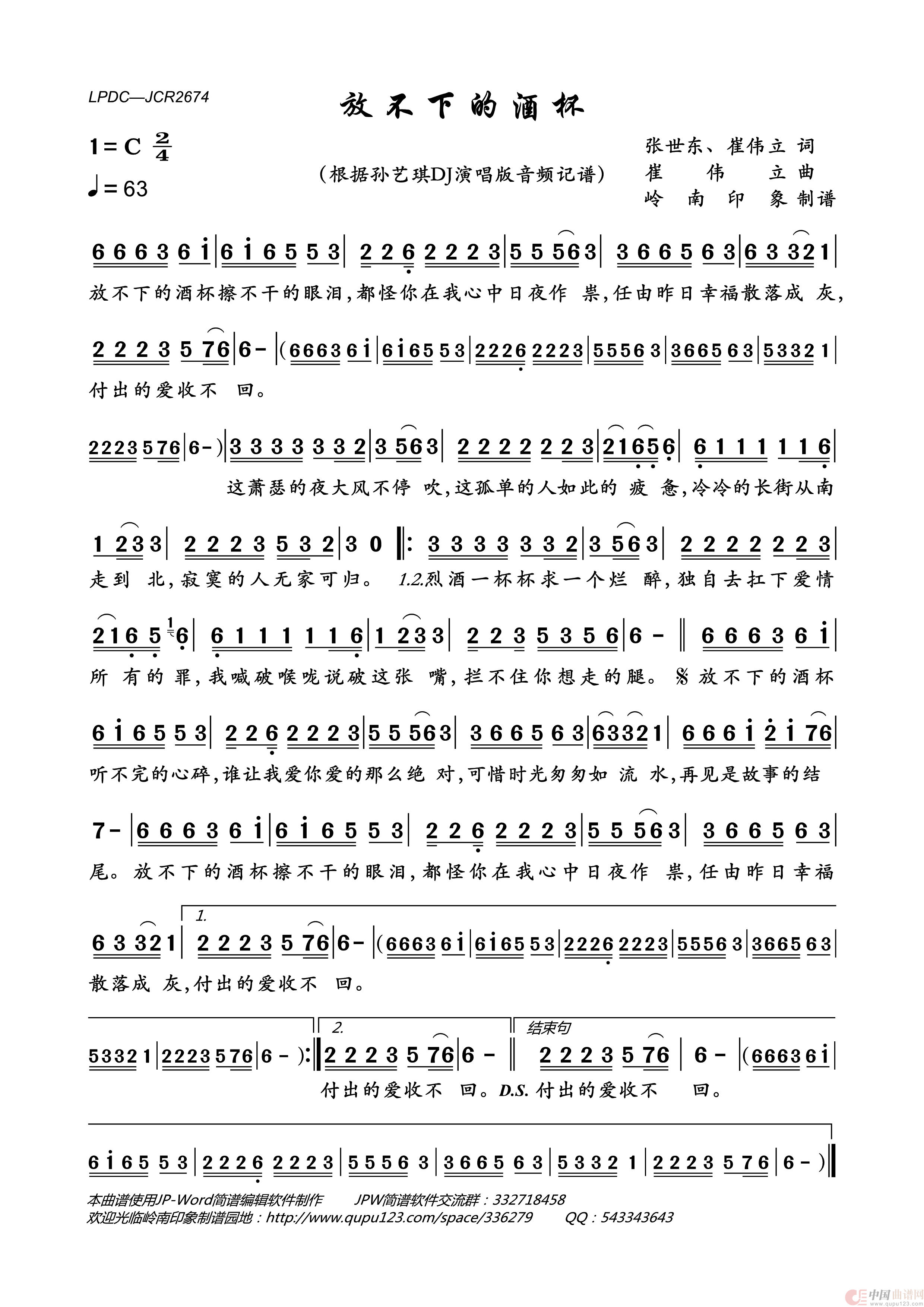 提示:在曲谱图片上单击右键,选择"图片另存为..."即可将曲谱保存到您的电脑中,打印时候可将图片插入到WORD中,调整合适大小打印即可。