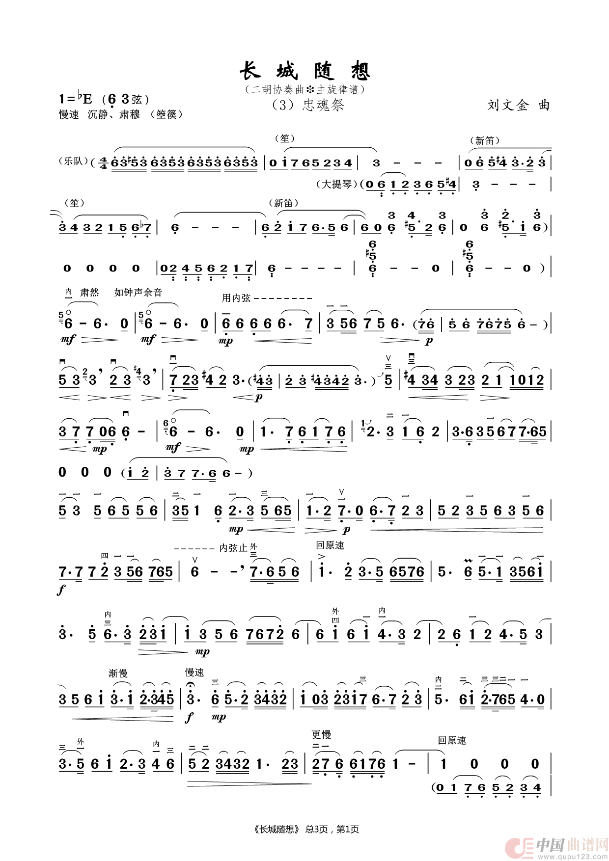 长城随想(3)忠魂祭(二胡协奏曲-主旋律谱)