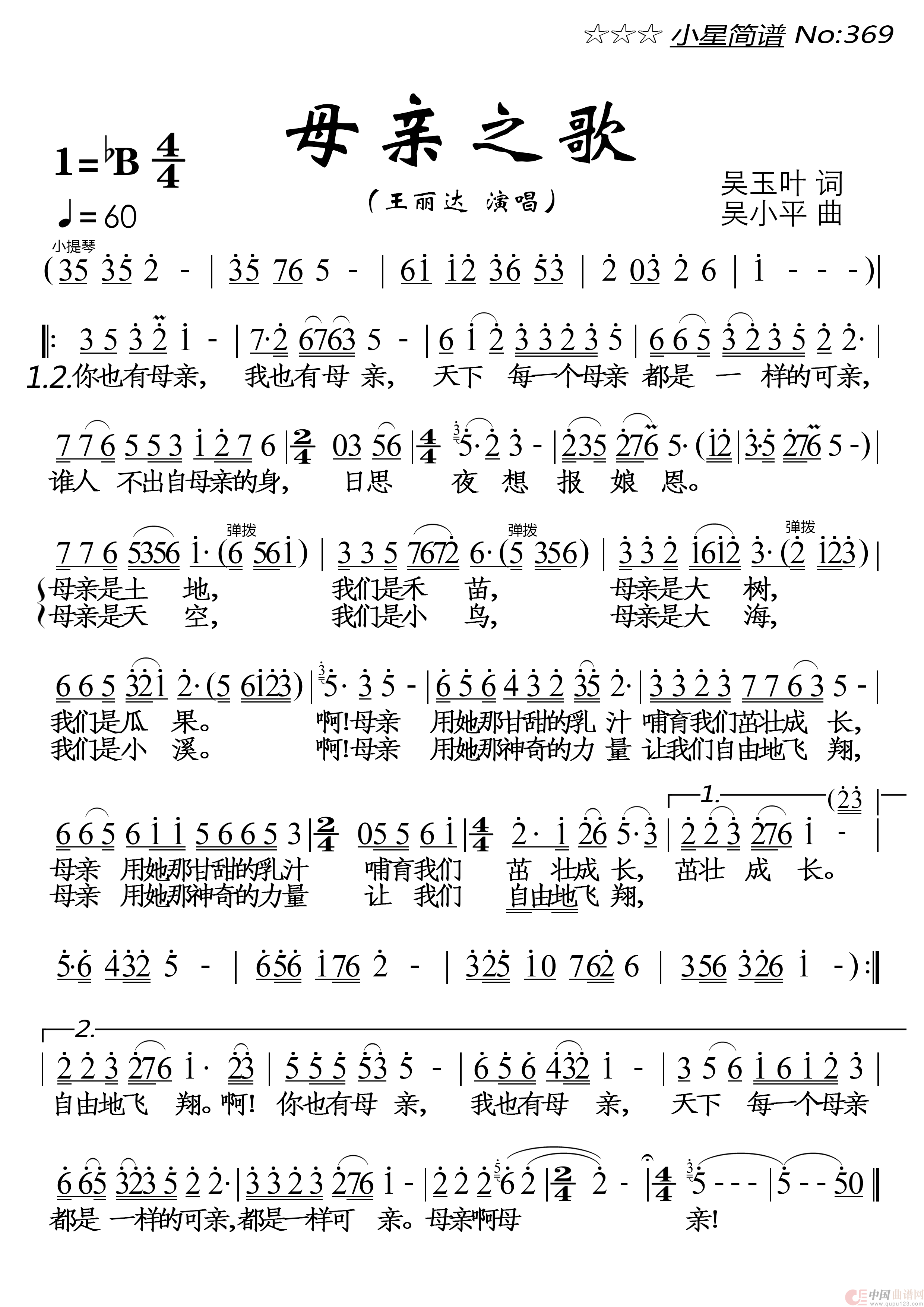 关于《母亲之歌》曲谱的评论