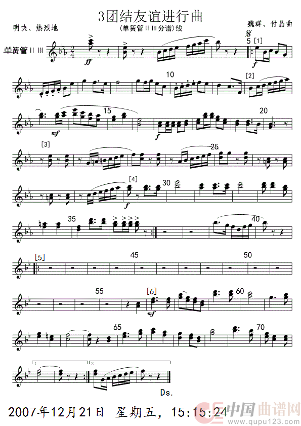 关于《3团结友谊进行曲(单簧管ⅡⅢ分谱)线》曲谱的评论