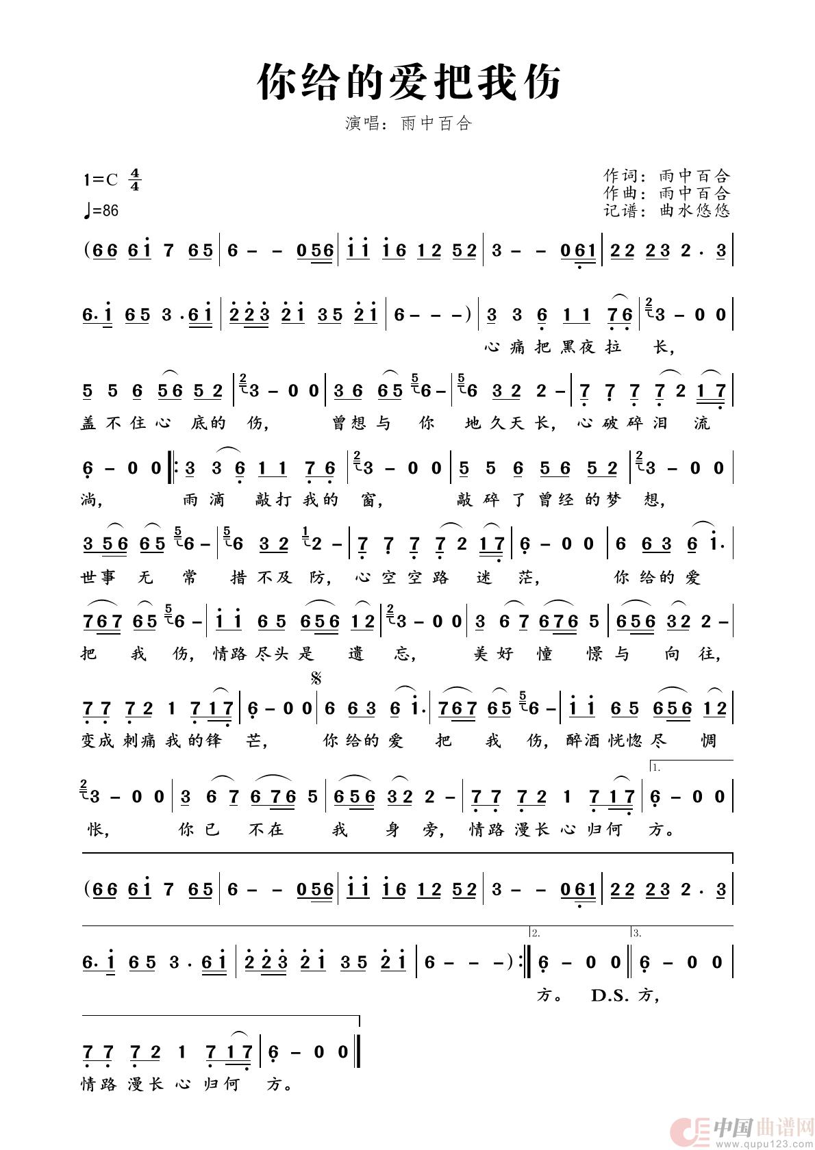 关于《你给的爱把我伤》曲谱的评论