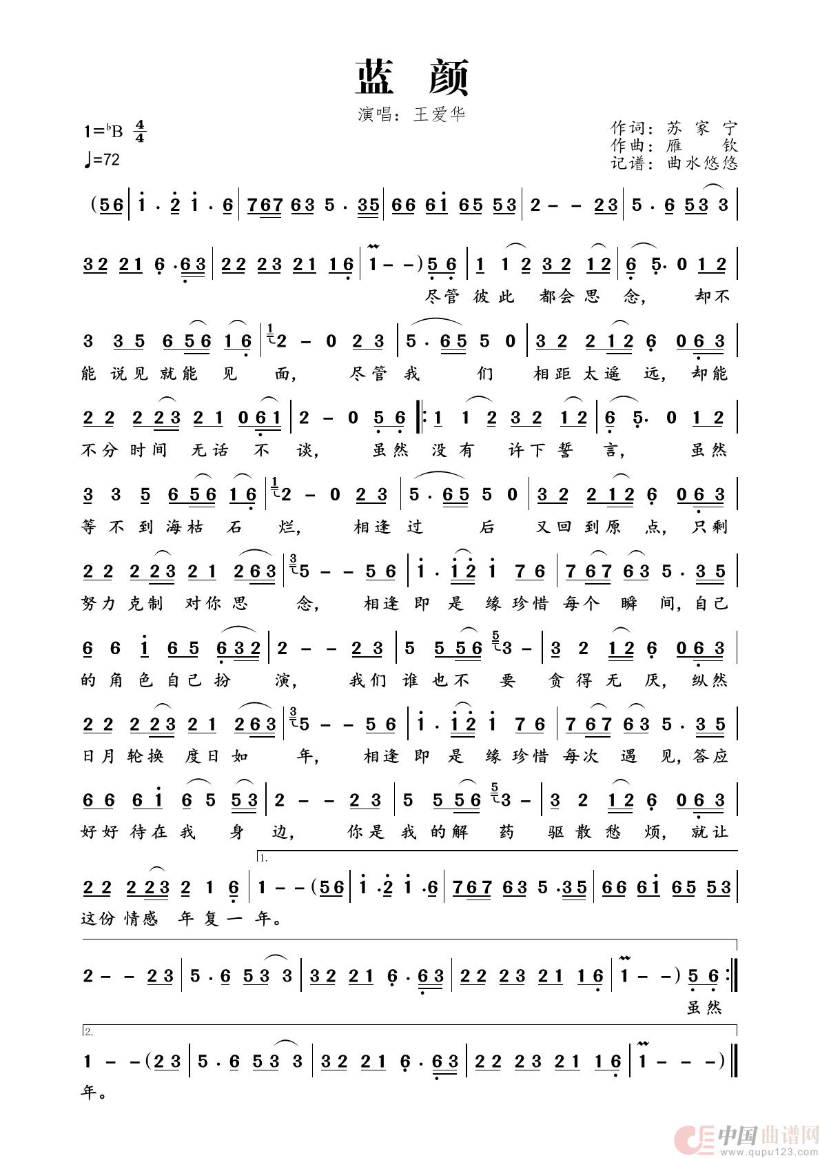 关于《蓝颜》曲谱的评论