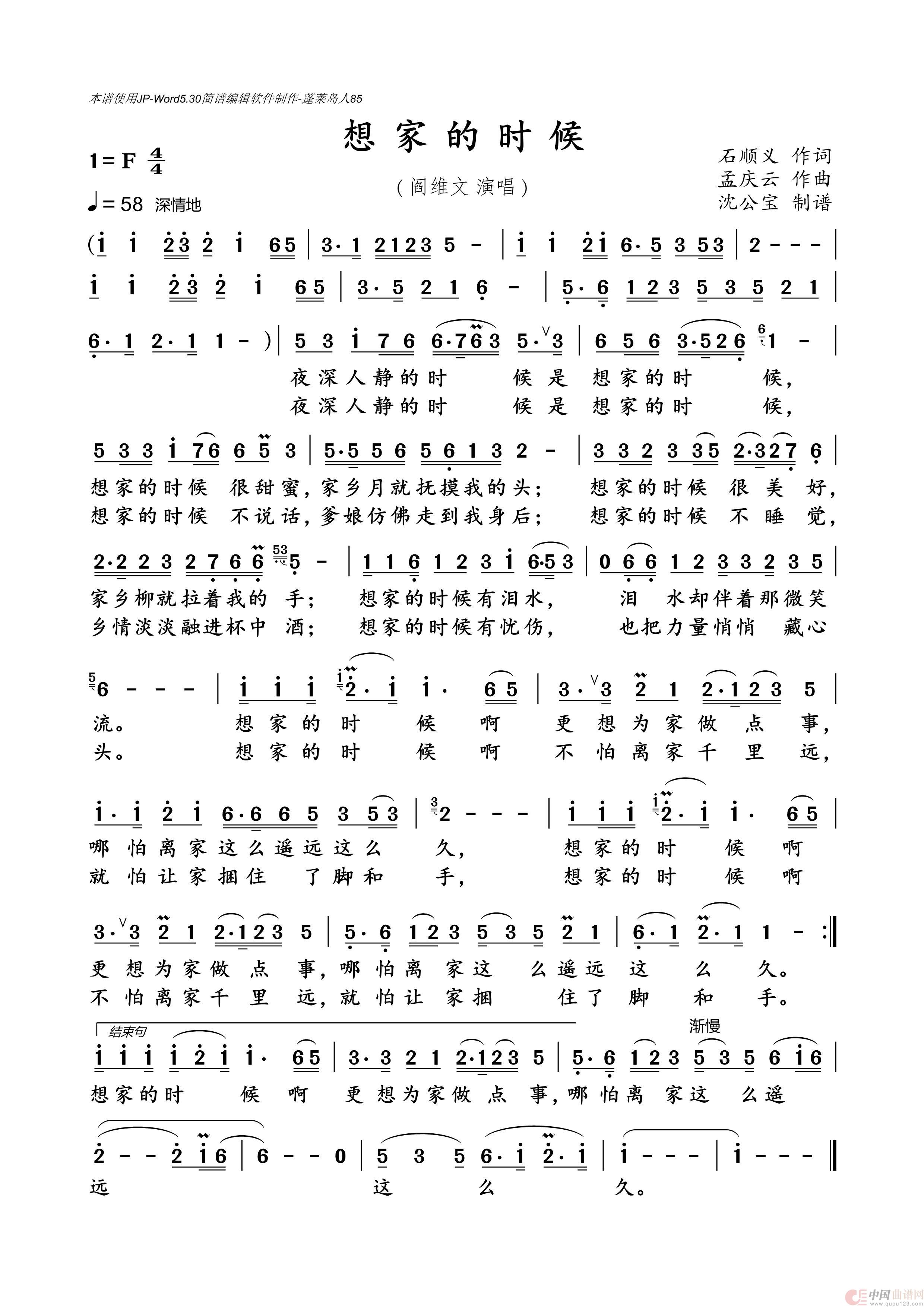 关于《想家的时候》曲谱的评论