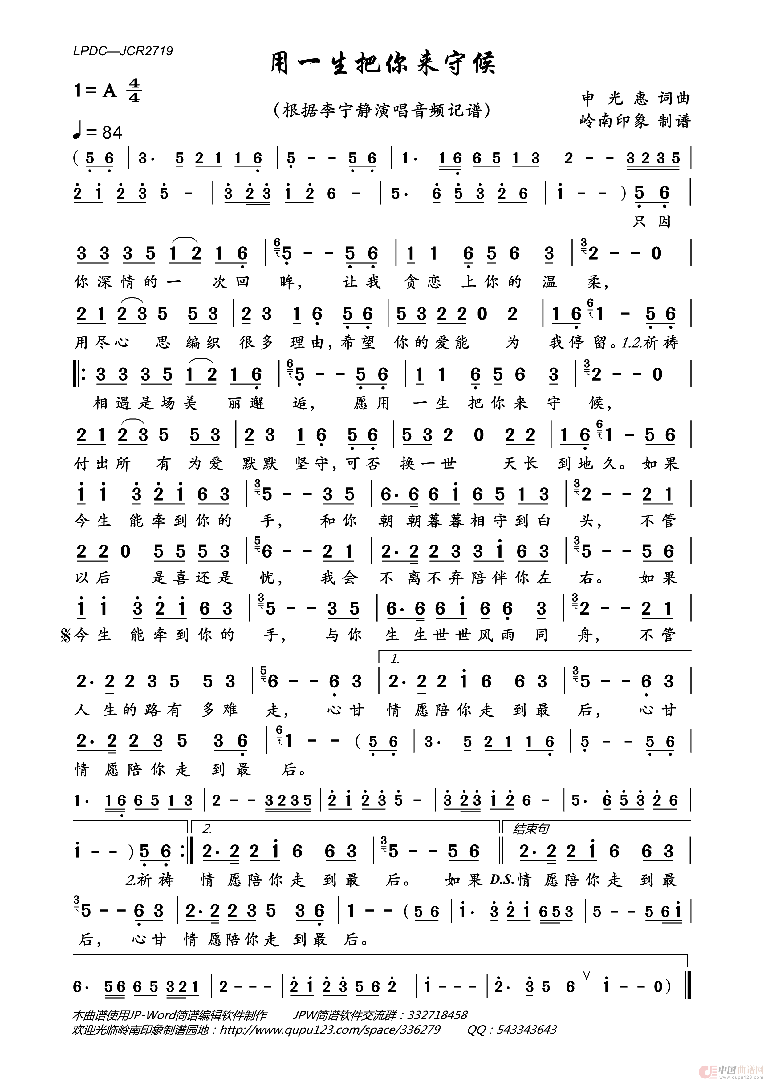 提示:在曲谱图片上单击右键,选择"图片另存为..."即可将曲谱保存到您的电脑中,打印时候可将图片插入到WORD中,调整合适大小打印即可。