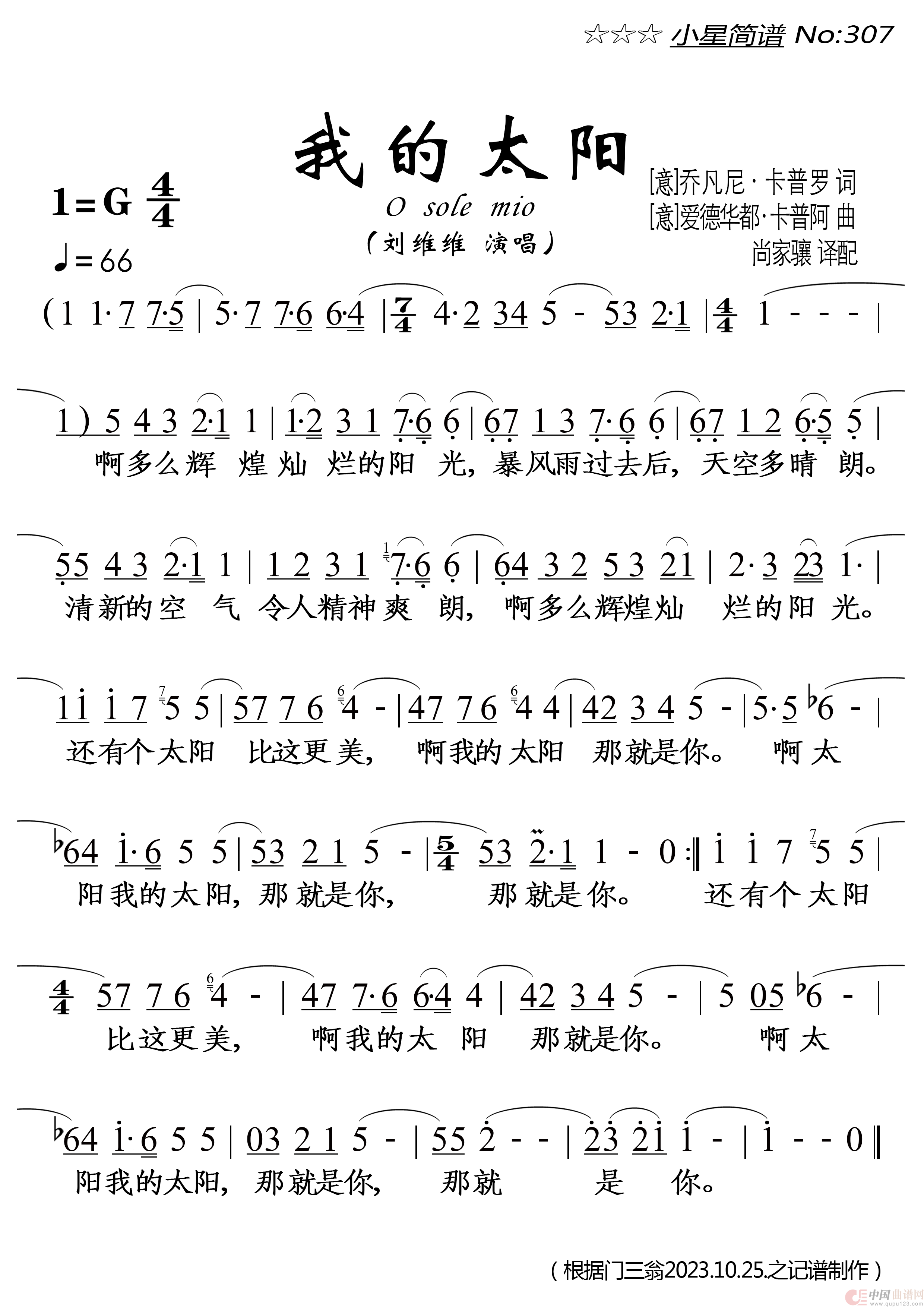关于《我的太阳》曲谱的评论