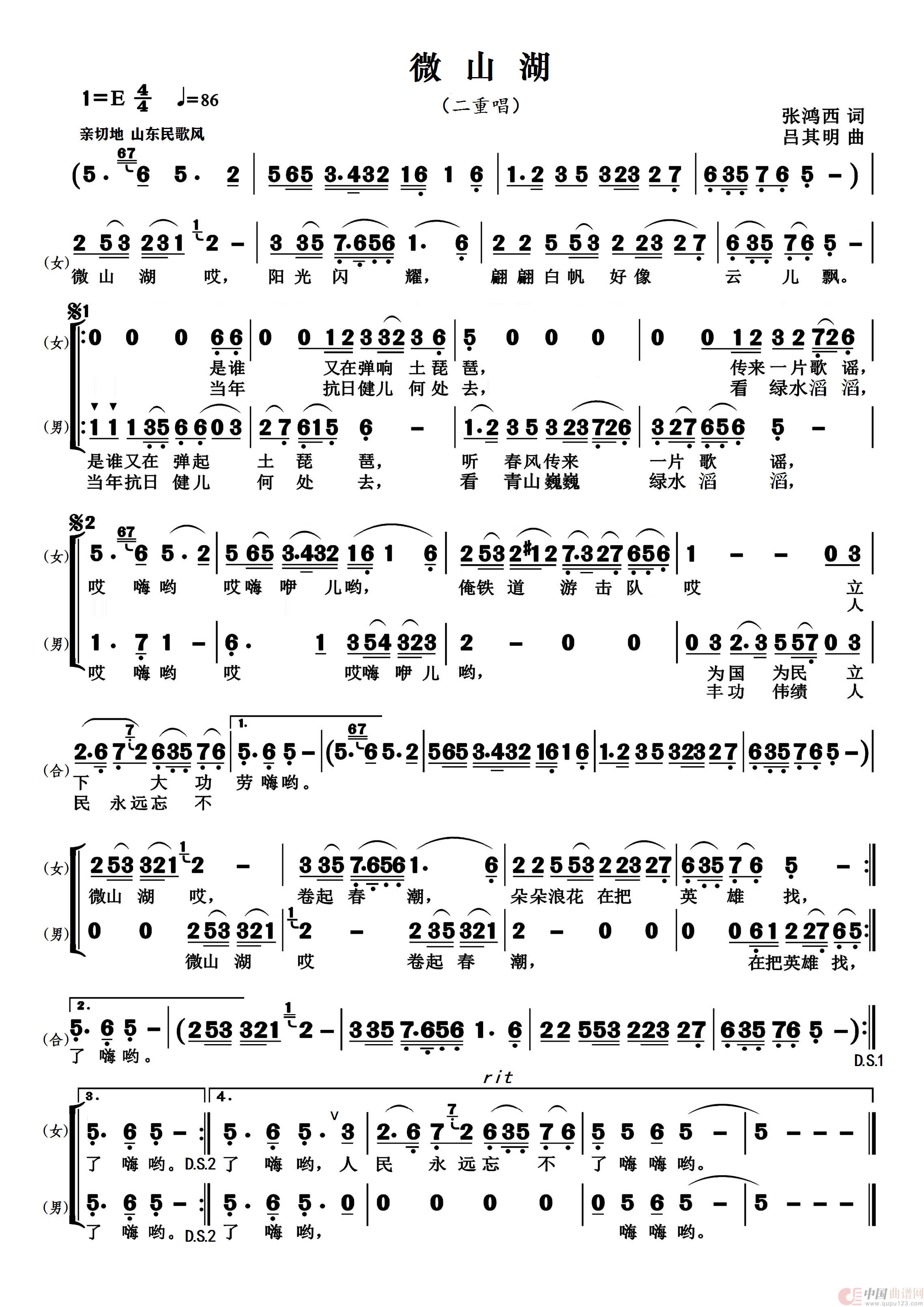 提示:在曲谱图片上单击右键,选择"图片另存为..."即可将曲谱保存到您的电脑中,打印时候可将图片插入到WORD中,调整合适大小打印即可。