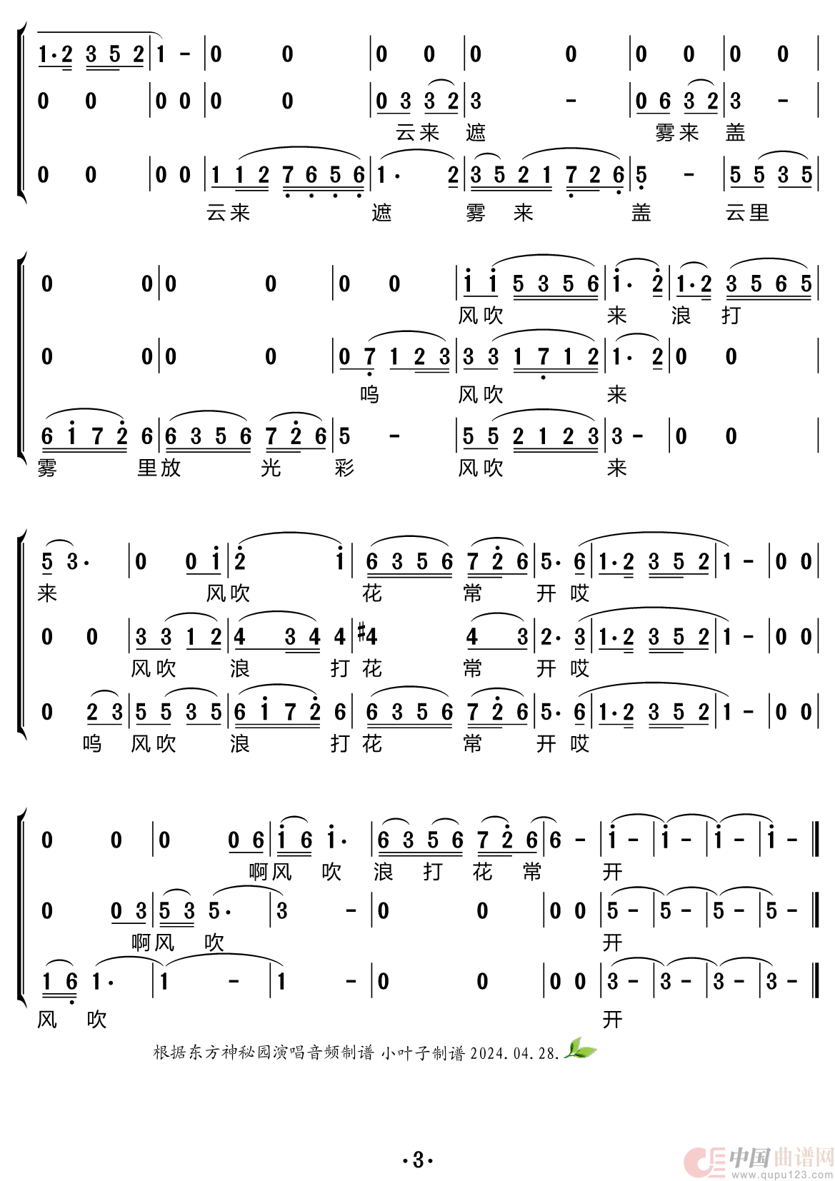 听了两遍真的非常好听。首先歌曲编配很有创意,新颖别致,男女声衔接很自然流畅。三位歌手也很有实力,小叶子制谱辛苦了!