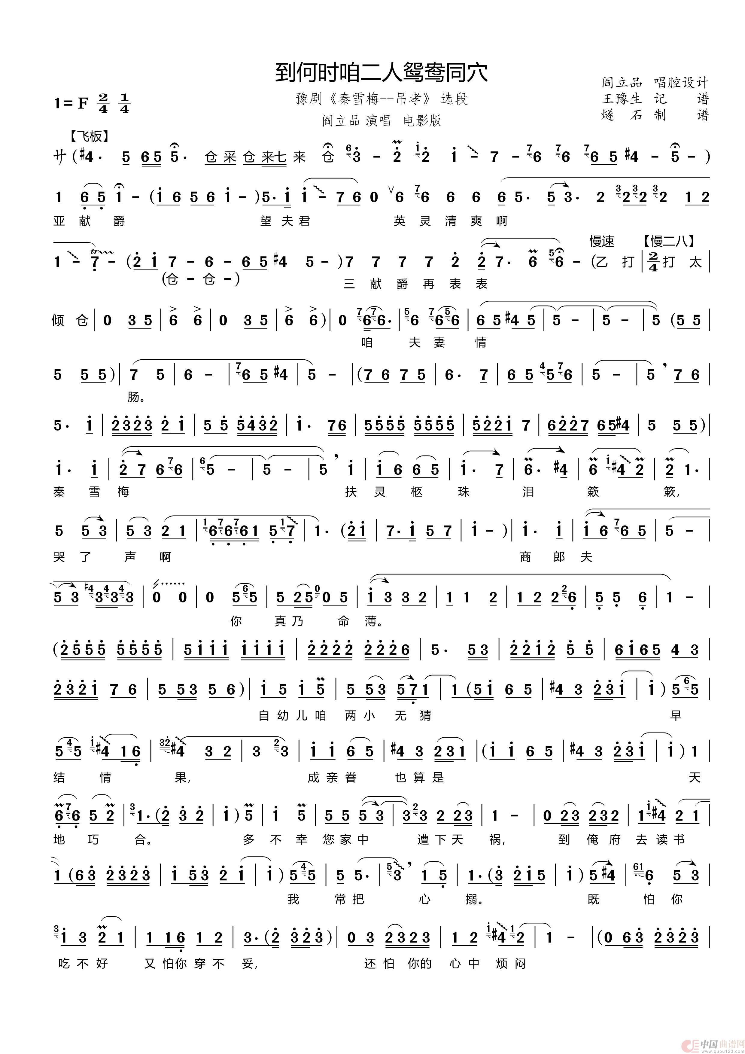 关于《到何时咱二人鸳鸯同穴》曲谱的评论