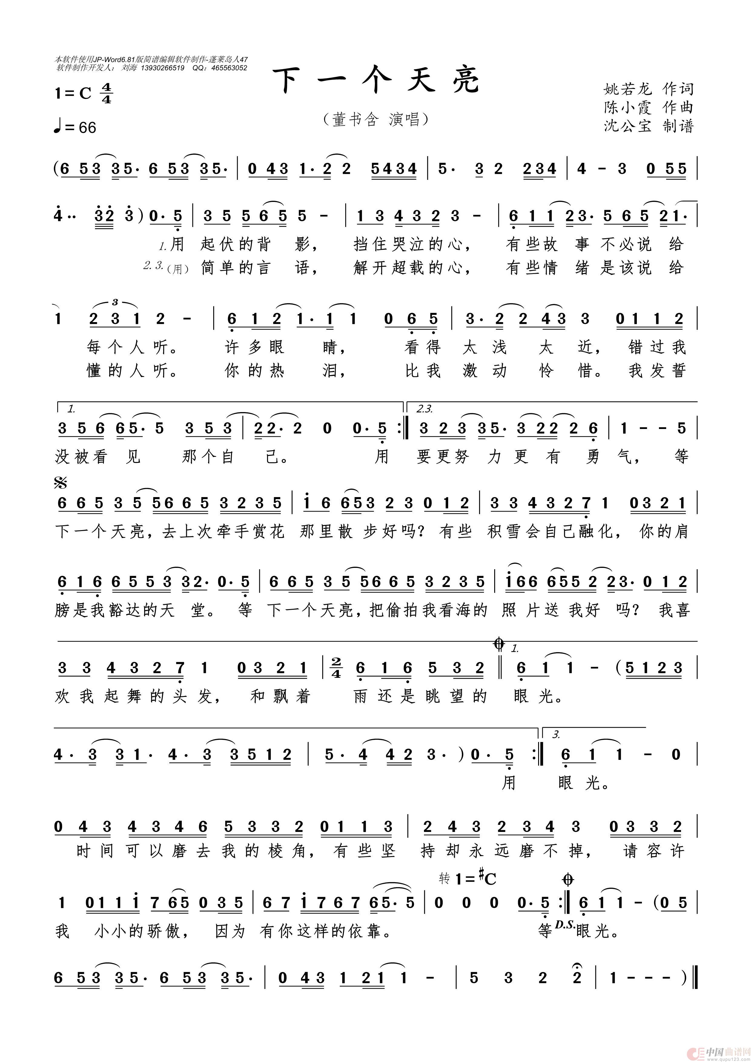 提示:在曲谱图片上单击右键,选择"图片另存为..."即可将曲谱保存到您的电脑中,打印时候可将图片插入到WORD中,调整合适大小打印即可。