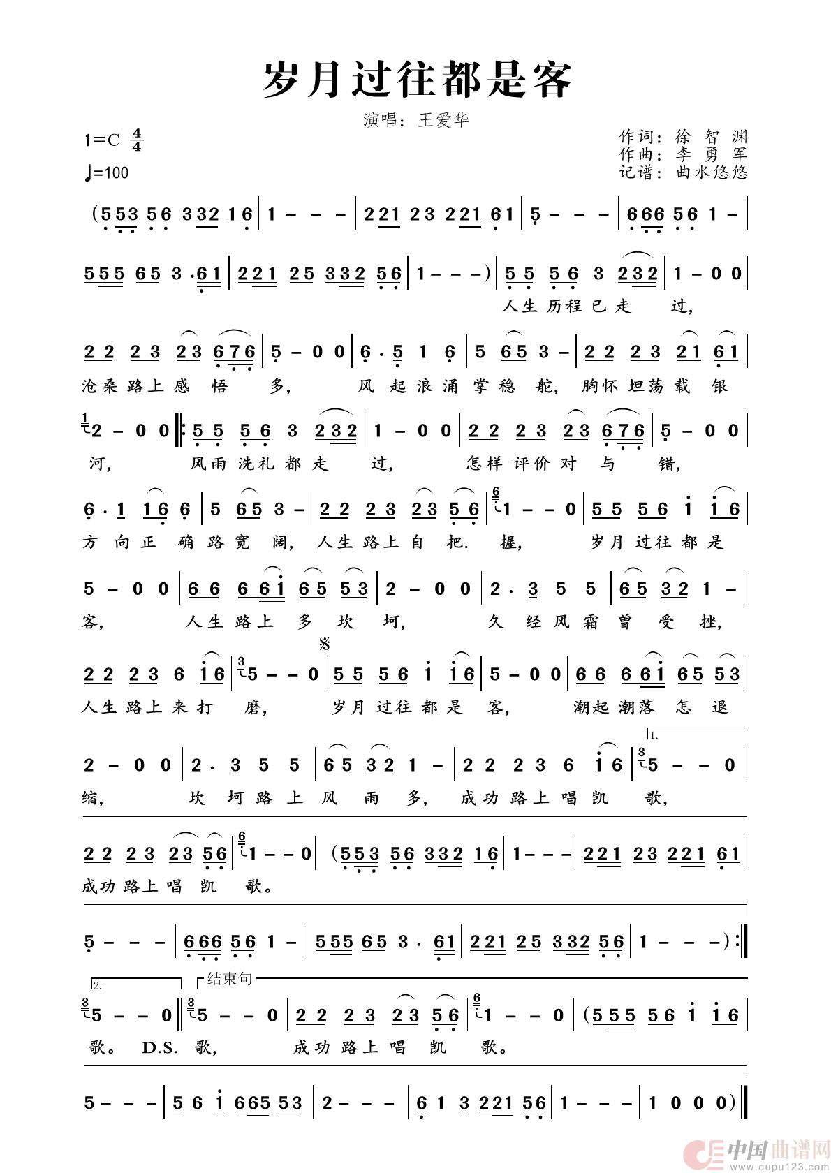 关于《岁月过往都是客》曲谱的评论