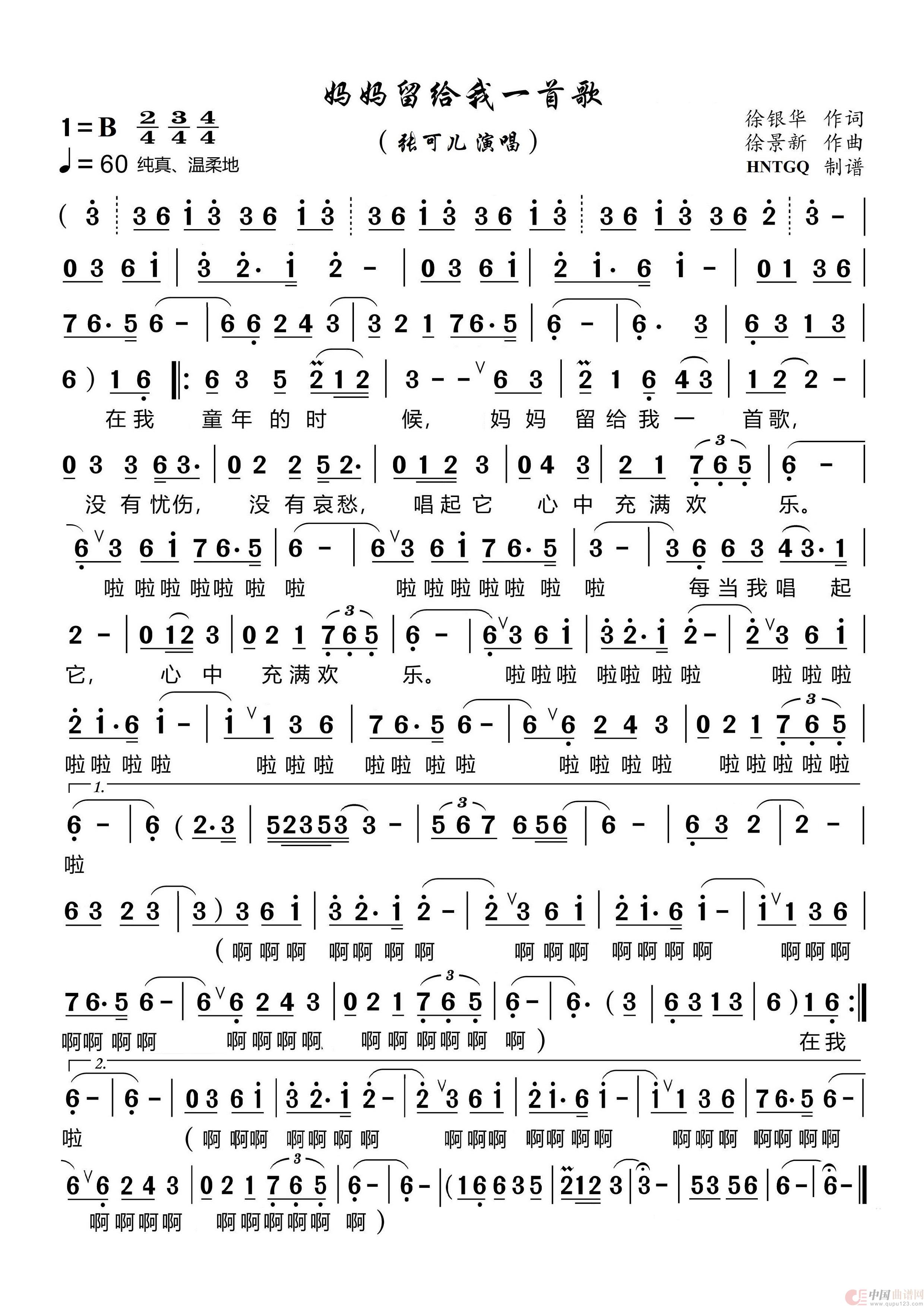 关于《妈妈留给我一首歌》曲谱的评论